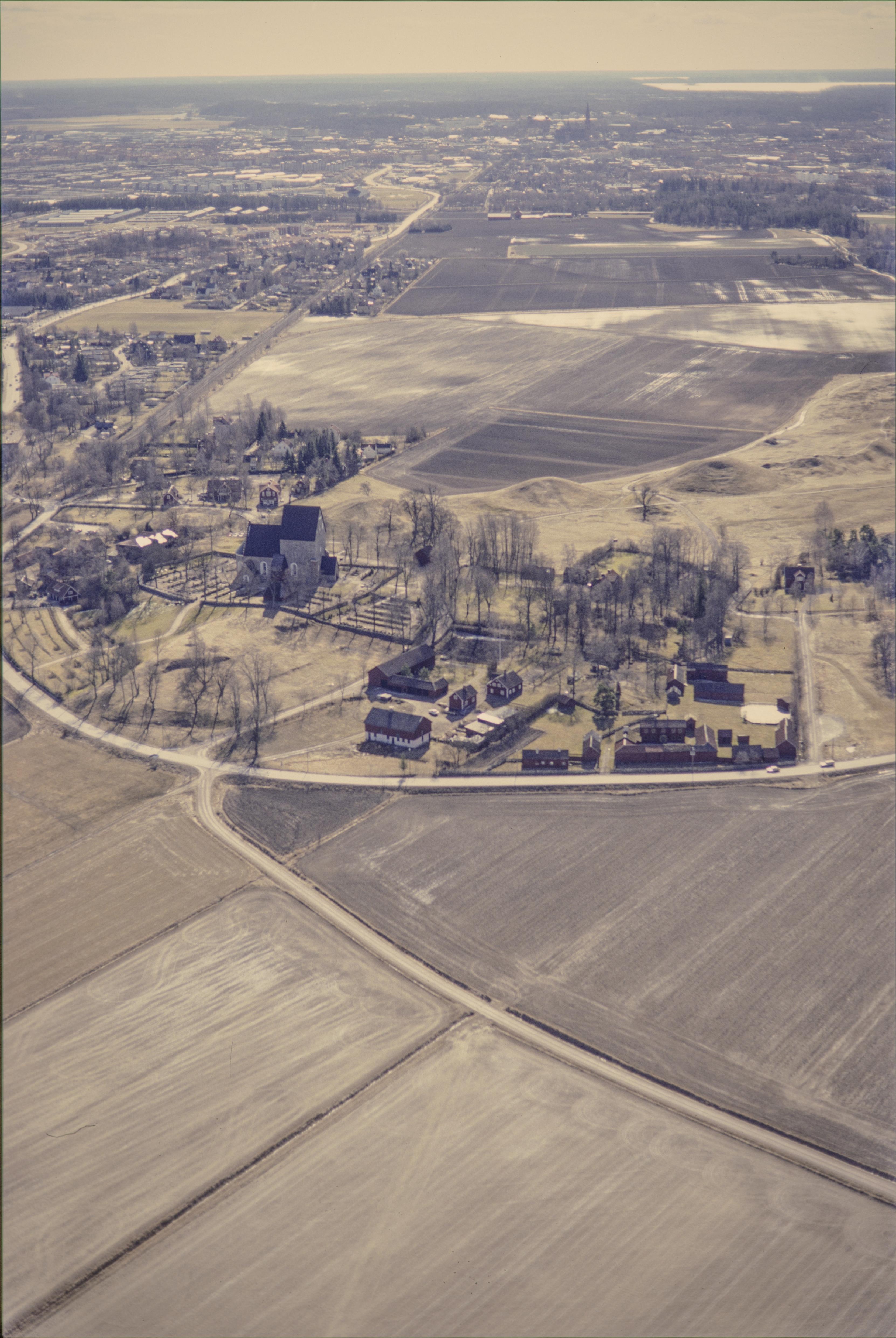 Beskrivning: Fyrisåns dalgång. Vid bildens mitt Gamla Uppsala kyrka RAÄnr Uppsala 774, Kungshögarna gravfält Uppsala 123:1, boplats Uppsala 263:1 m.fl. Bilden är tagen mot (väderstreck): SSO