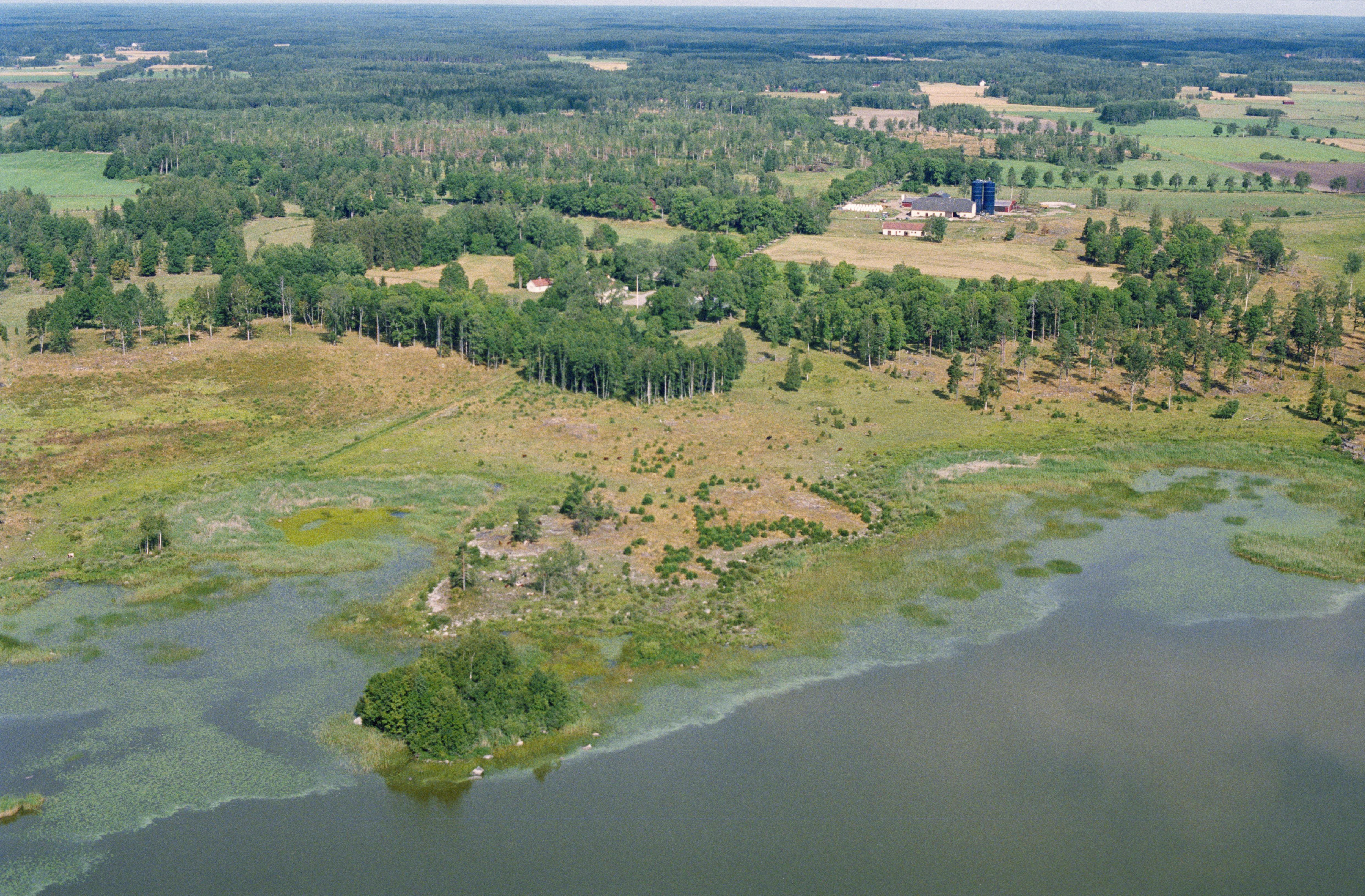 Beskrivning: Vid bildens mitt lämningar efter borg / vallgrav RAÄnr Östervåla 359 och bytomt Östervåla 362 vid Aspnäs herrgård norr om sjön Tämnaren. Aspnäs gårdskyrka vid bildens mitt, Bilden är tagen mot (väderstreck): N