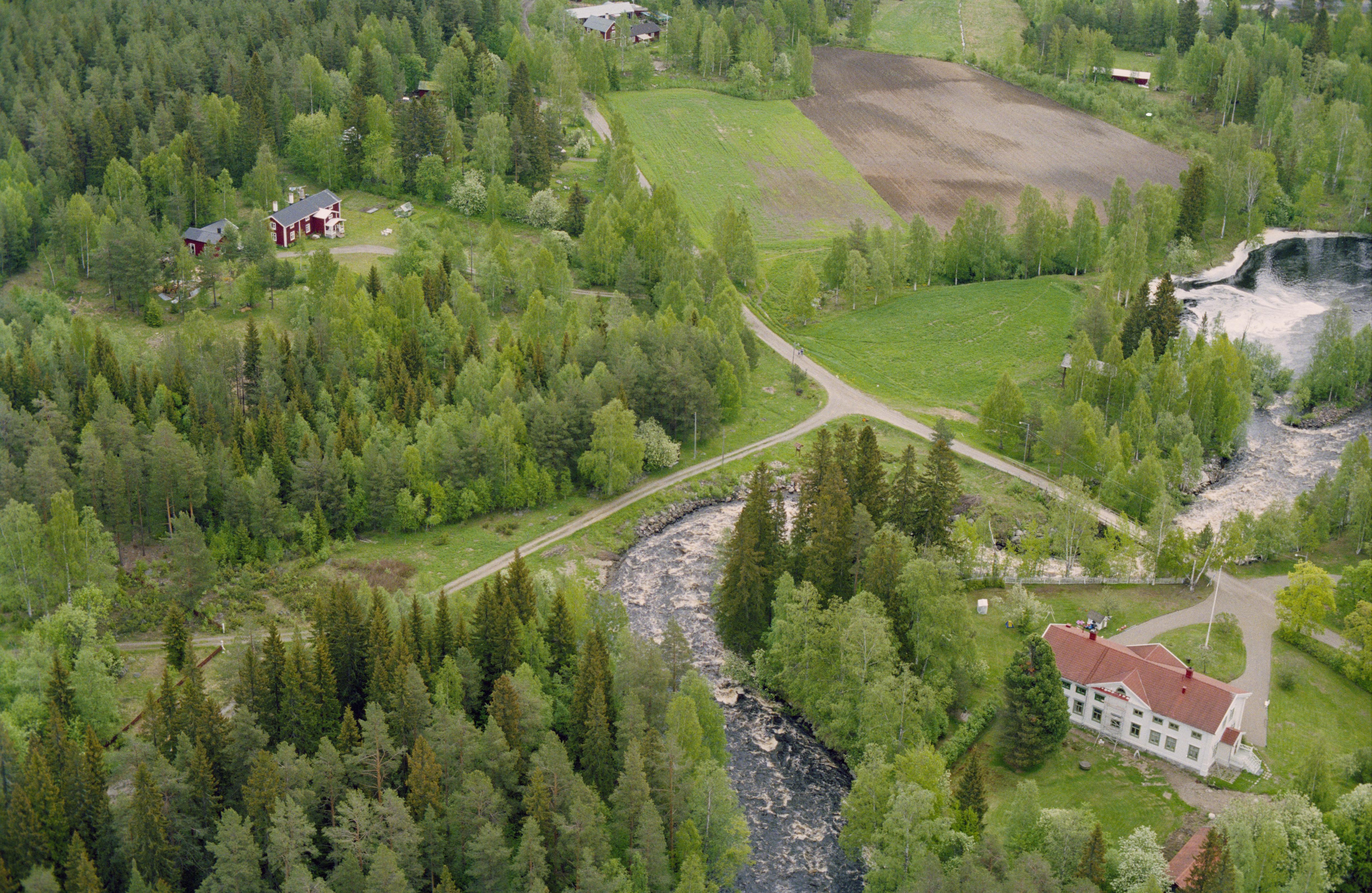 Beskrivning: Sågverksområdet Gammelsågen och Strömsholms bruk vid Bureälven. Byggnadsminnet Strömsholms herrgård nere till höger. Bilden är tagen mot (väderstreck): Ö