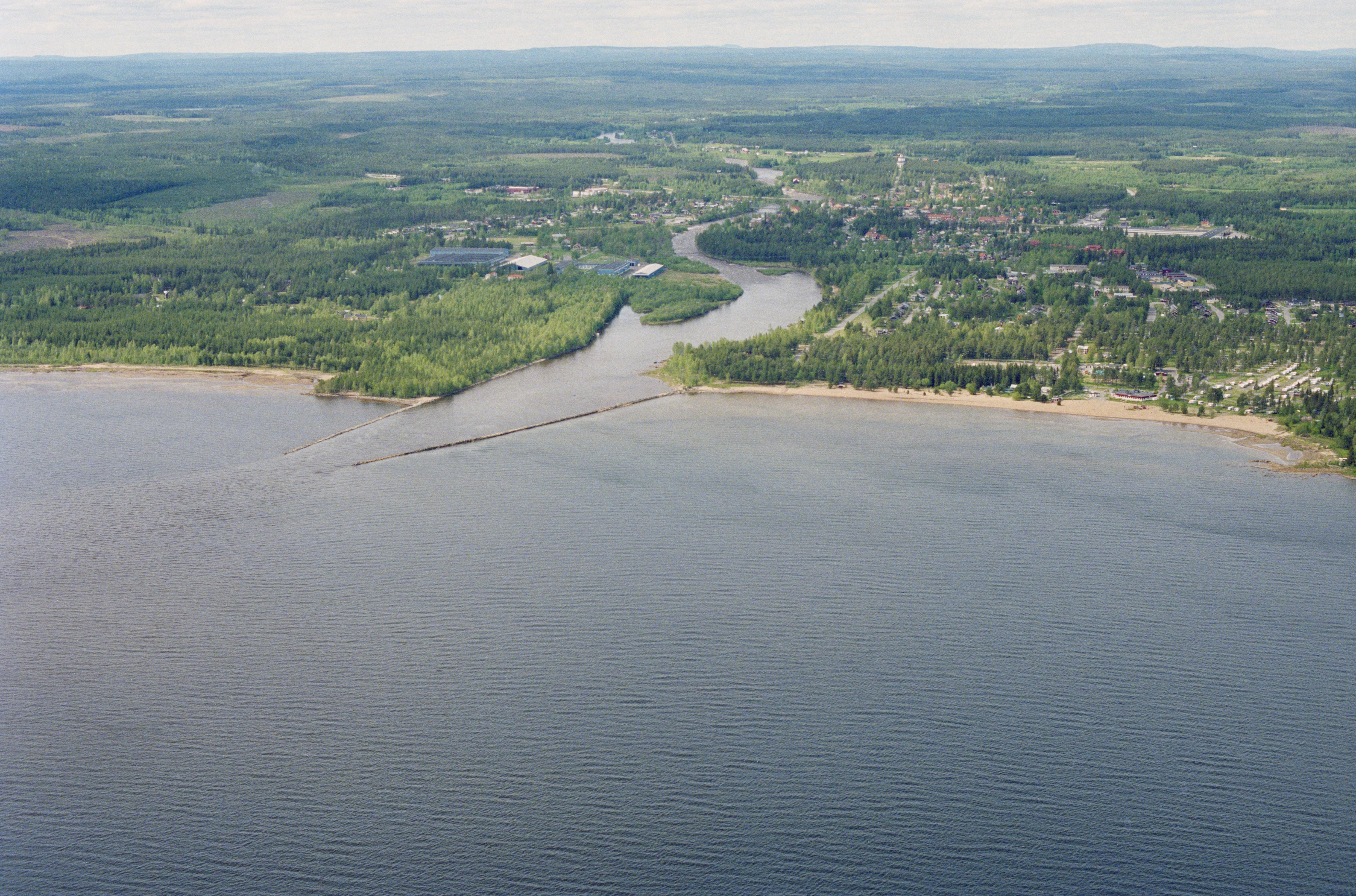 Beskrivning: Byske tätort och kyrkby. I bildens nedre del Byskeälvens mynning i Byskefjärden. Till vänster om älvmynningen två småindustriområden, RAÄnr Byske 142:1 och 930:1. Bilden är tagen mot (väderstreck): VSV