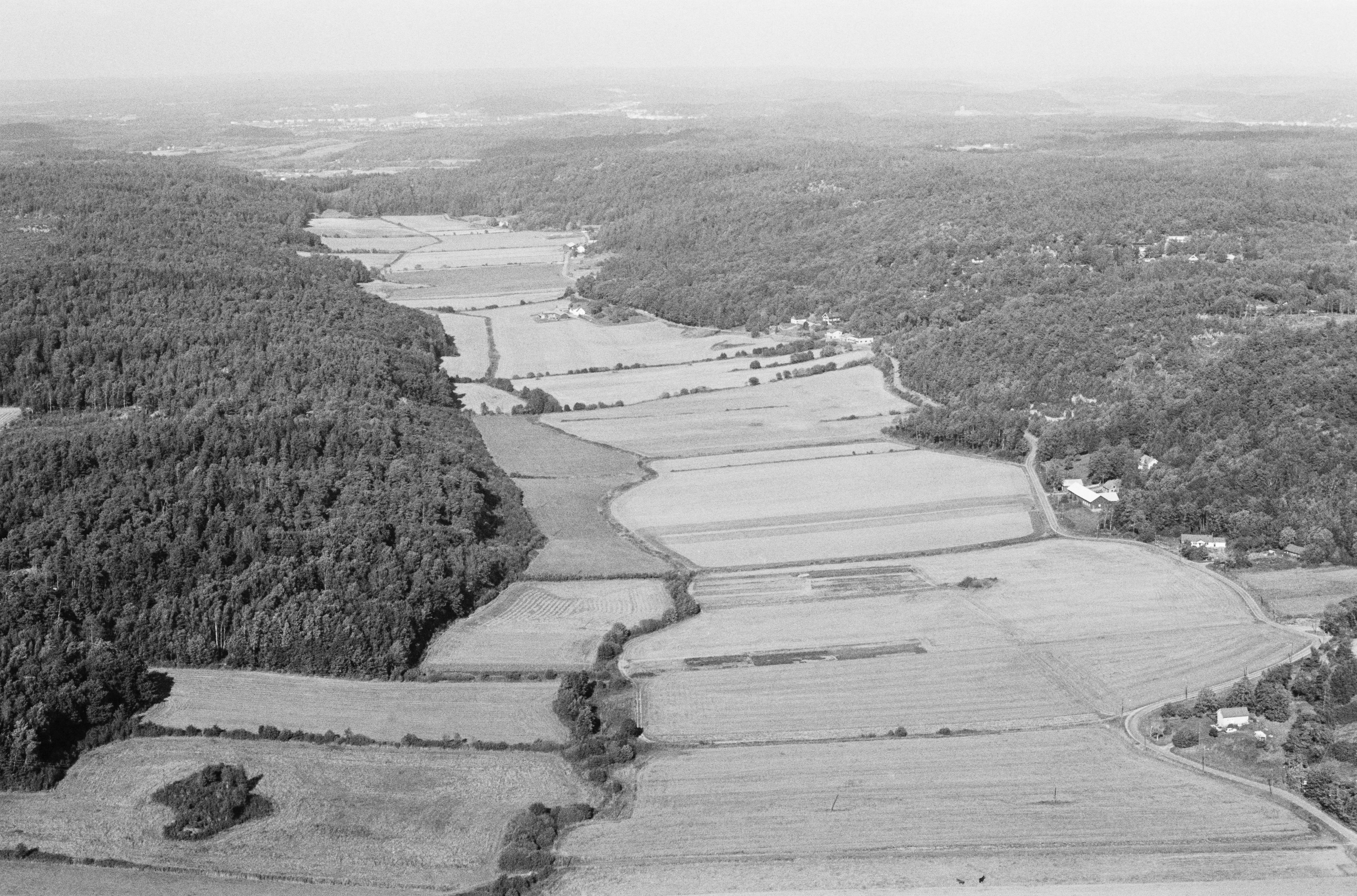 Beskrivning: Djupedalsåns dalgång. Österslätt i bildens nedre del. Uppe till höger fornborg Borres slott RAÄnr Säve 134:1 och fornborg Borres håla RAÄnr Säve 133.1. Bilden är tagen mot (väderstreck): N