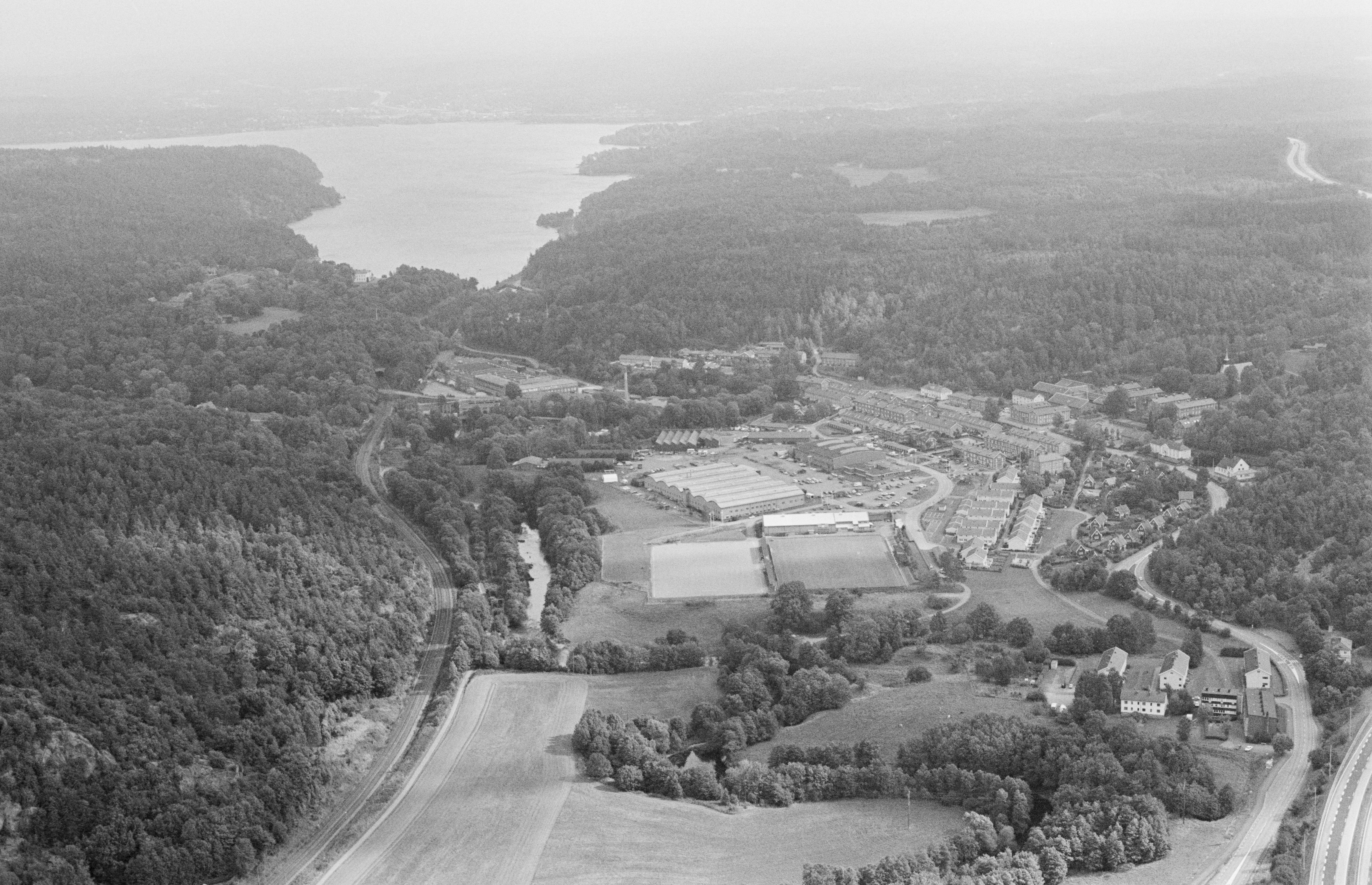 Beskrivning: Jonsereds tätort vid sjön Aspen. Jonsereds kyrka i bildens högerkant. Bilden är tagen mot (väderstreck): Ö