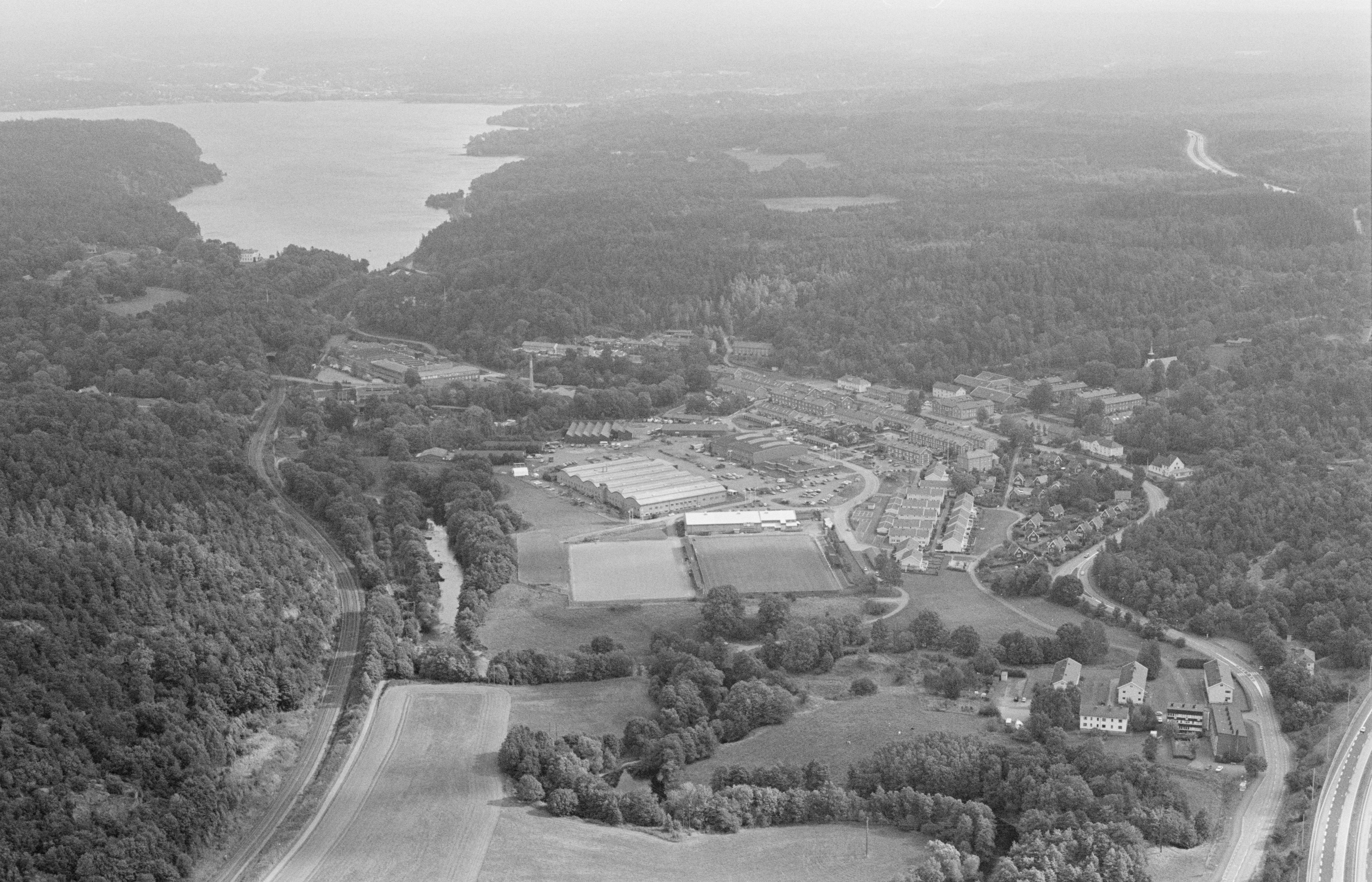 Beskrivning: Jonsereds tätort vid sjön Aspen. Jonsereds kyrka i bildens högerkant. Bilden är tagen mot (väderstreck): Ö