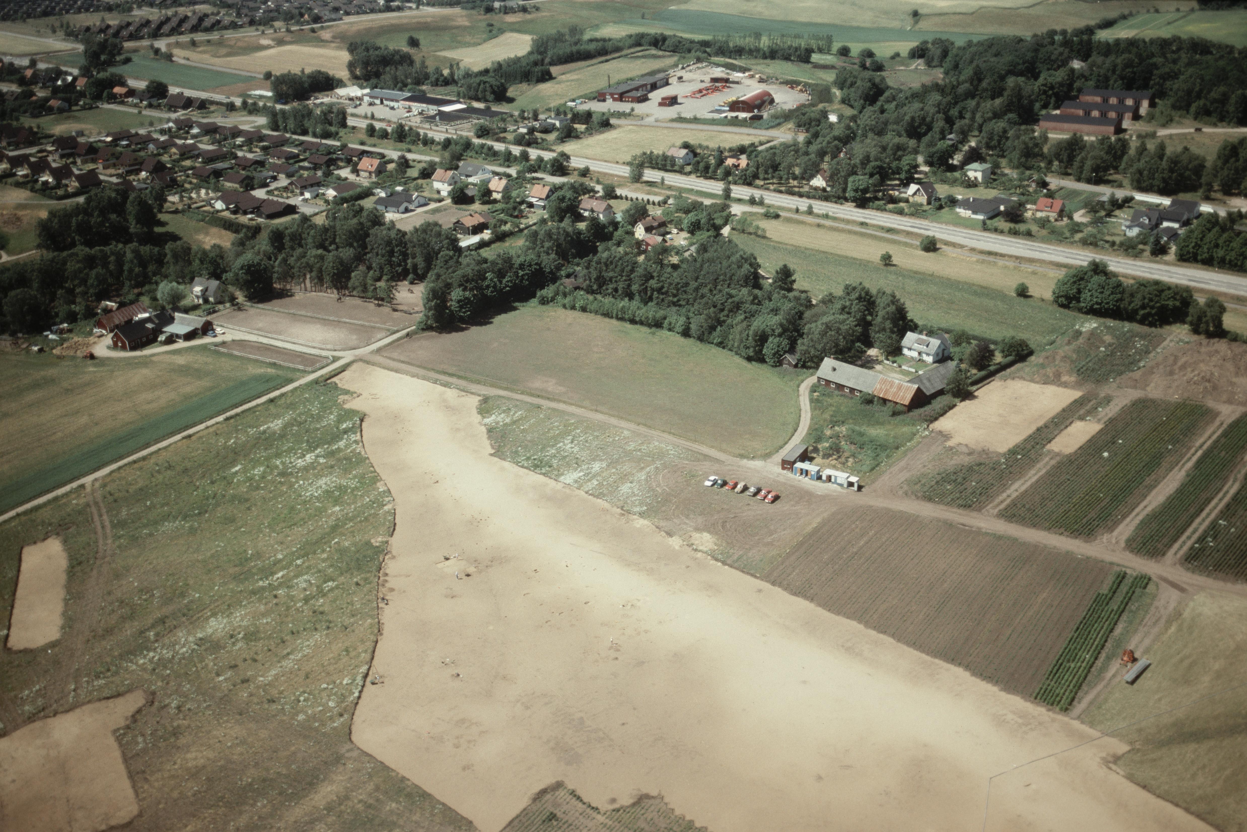 Beskrivning: Arkeologisk undersökning av boplats RAÄnr Snöstorp 94:1 vid bildens mitt. Bilden är tagen mot (väderstreck): NV