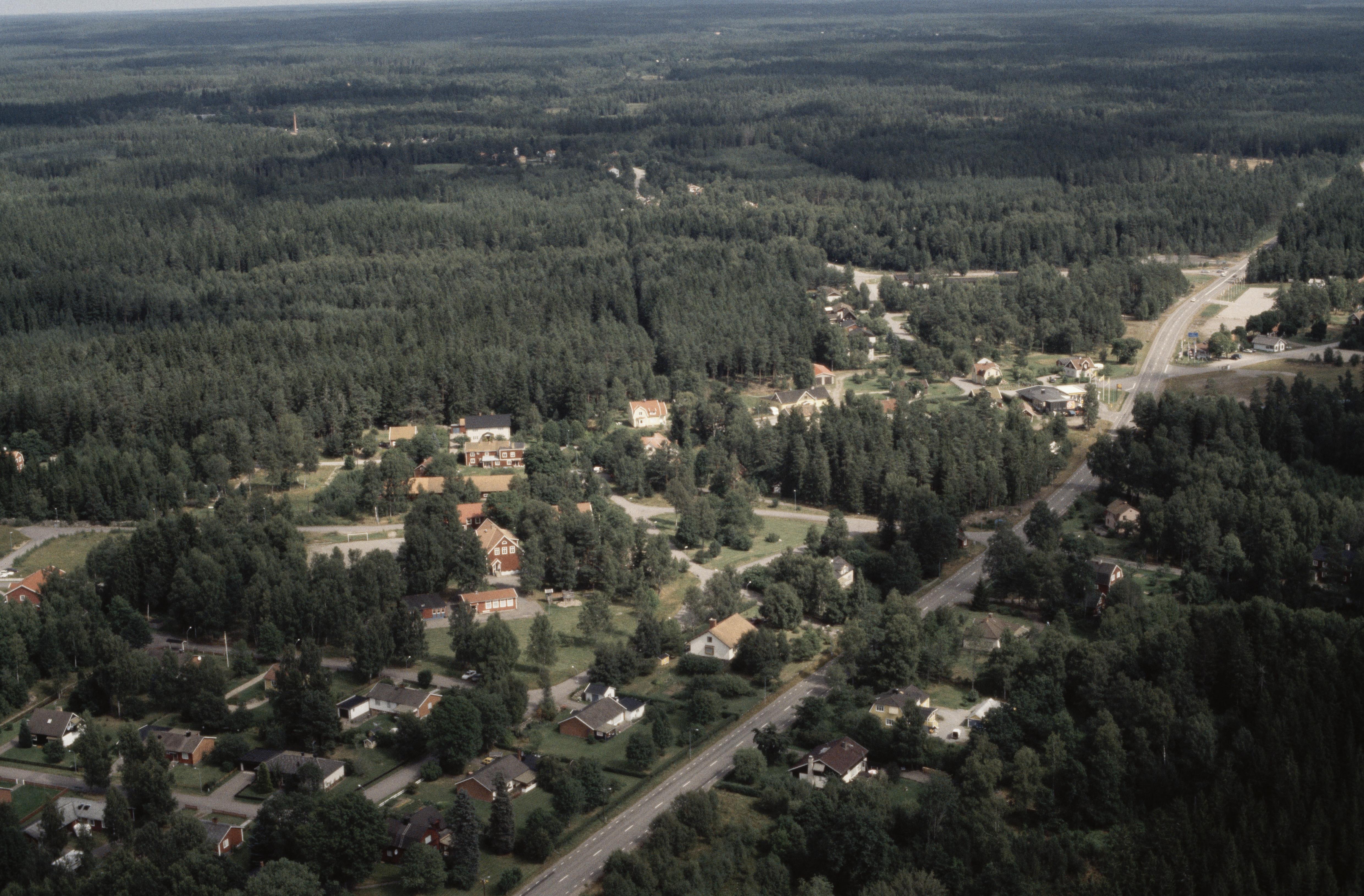 Beskrivning: Eriksmåla tätort. Marknadsplatsen / samlingsplatsen RAÄnr Algutsboda 55:1 och vägmärke Algutsboda 56:1 till höger om bildens mitt. Bilden är tagen mot (väderstreck): NO