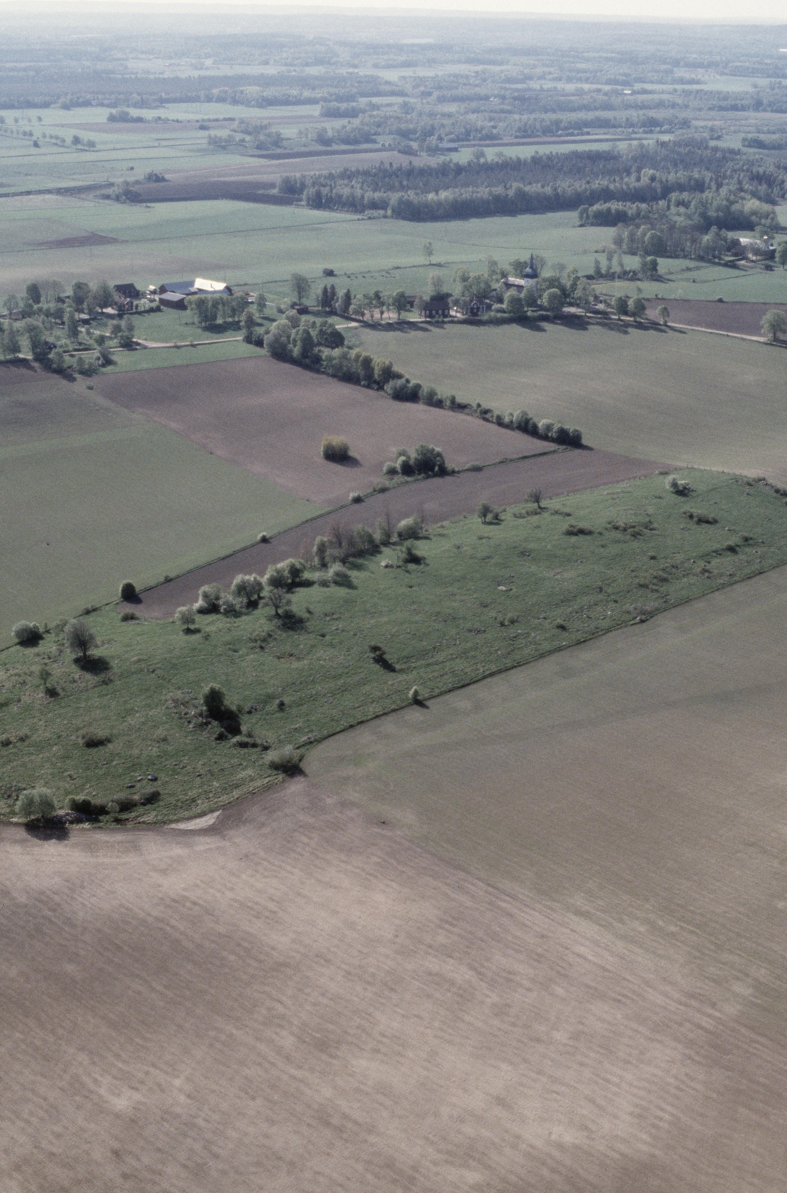 Beskrivning: Drumlinområde. Tjugesta gamla tomt RAÄnr Hackvad 34:1 vid bildens mitt. Hackvads kyrka över bildens mitt. Bilden är tagen mot (väderstreck): SO