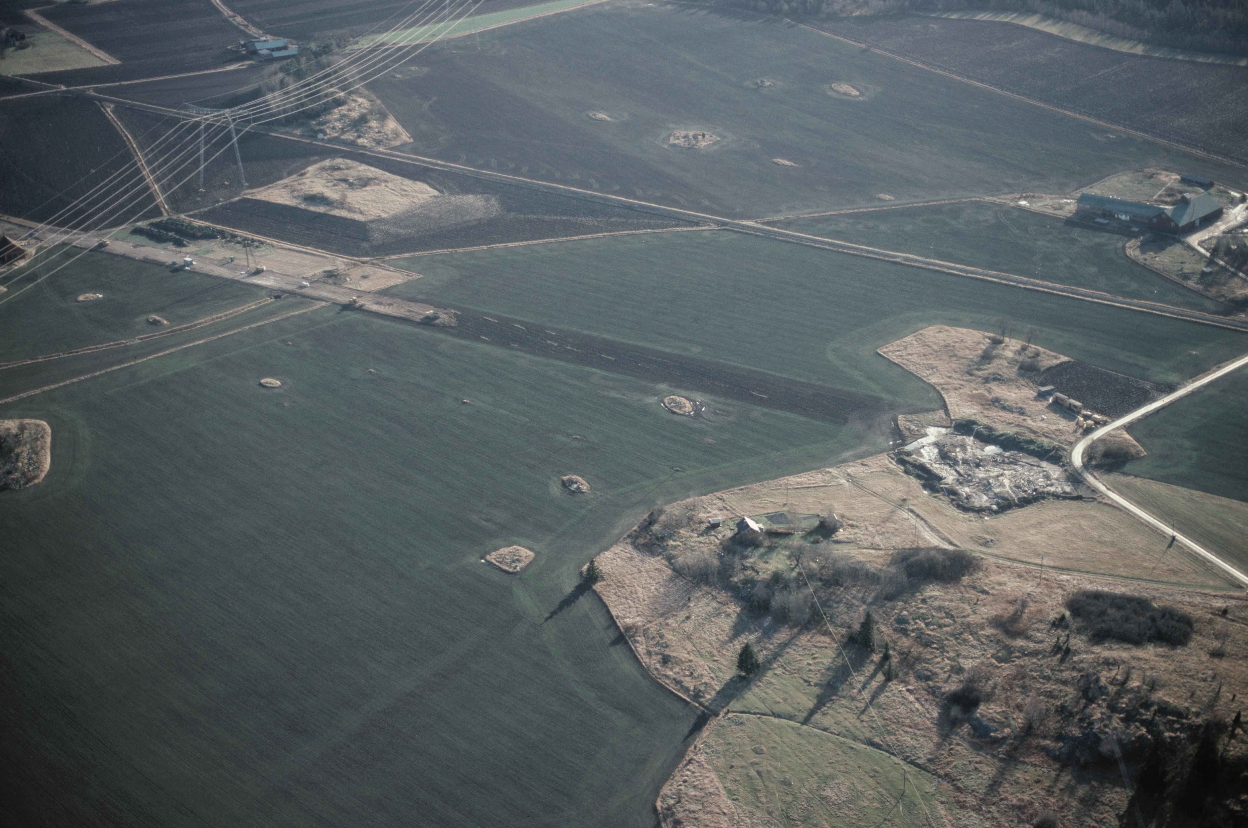 Beskrivning: Arkeologiska undersökningar innan bygge av väg E18 vid Pollista. Till höger Dragonbacken och Pollista gamla tomt RAÄnr Övergran 228:1. Bilden är tagen mot (väderstreck): SO