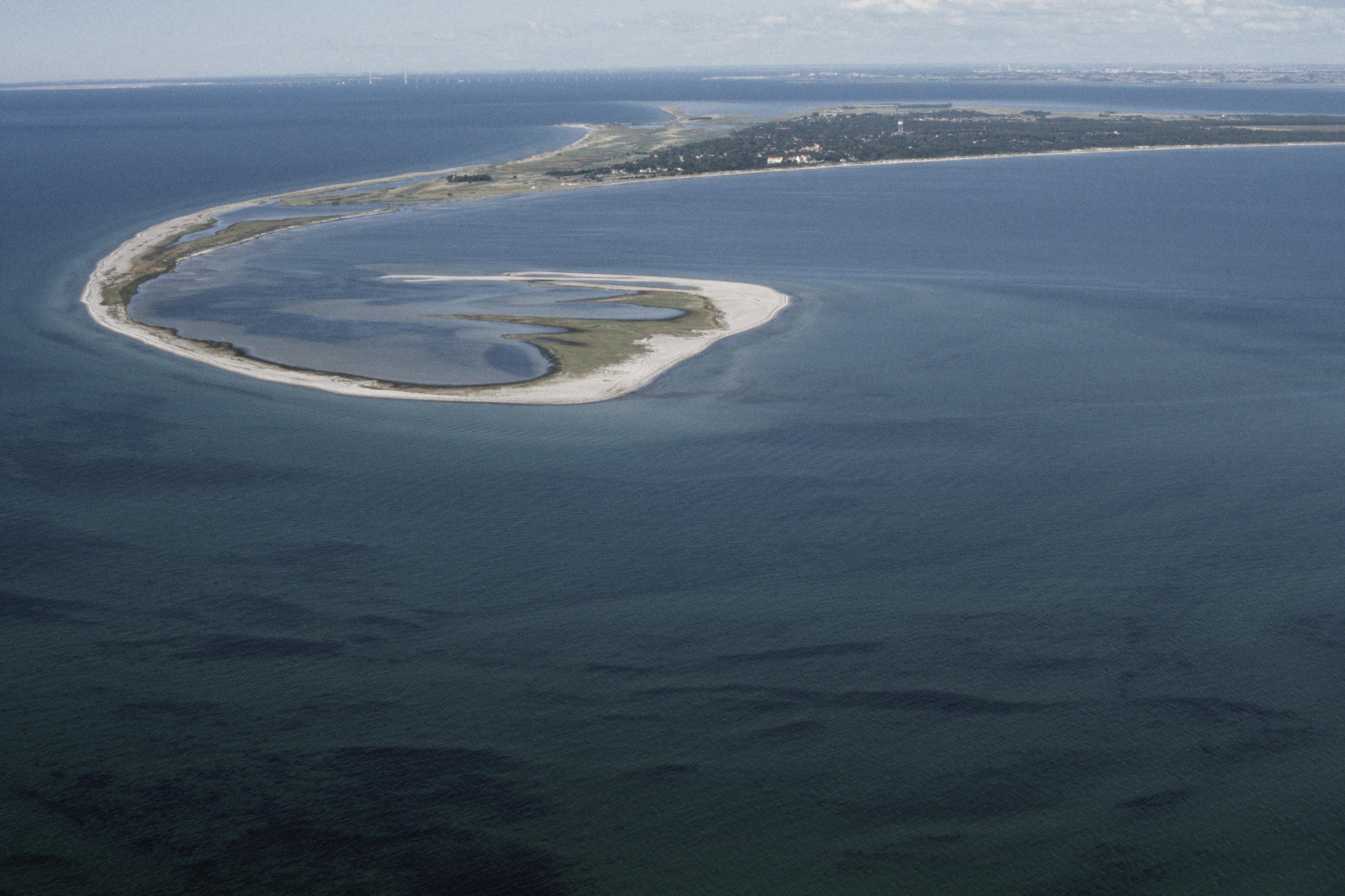Beskrivning: Måkläppen - en landremsa som sticker ut från Falsterbonäset. Tätorten Skanör med Falsterbo i bildens övre del. Bilden är tagen mot (väderstreck): N