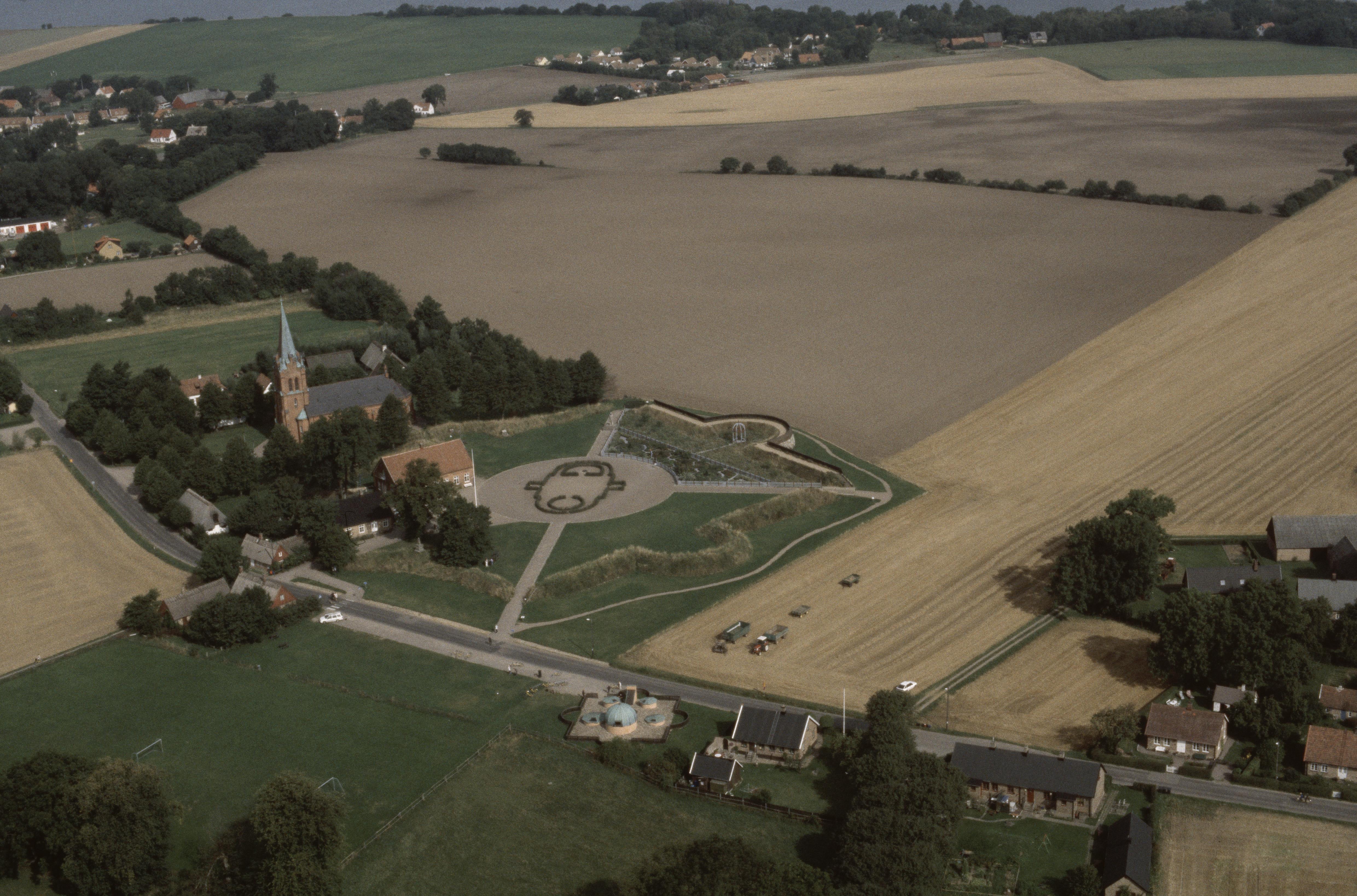 Beskrivning: Sankt Ibbs nya kyrka. Ruiner efter Tycho Brahes slott Uranienborg och observatorium Stjärneborg RAÄnr Sankt Ibb 29:1. Bilden är tagen mot (väderstreck): NV