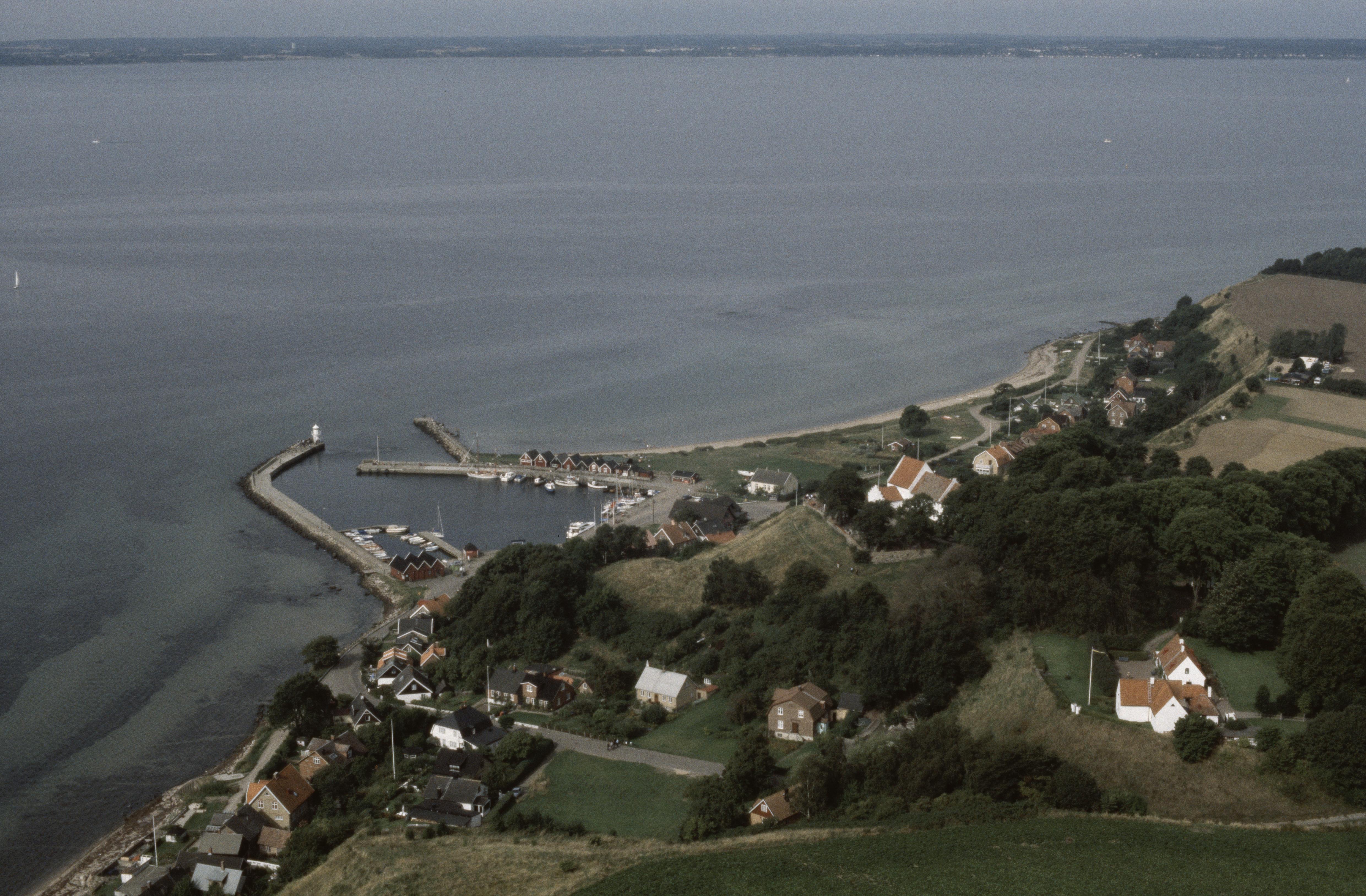Beskrivning: Fiskeläget Kyrkbacken. Sankt Ibbs gamla kyrka. Bilden är tagen mot (väderstreck): V