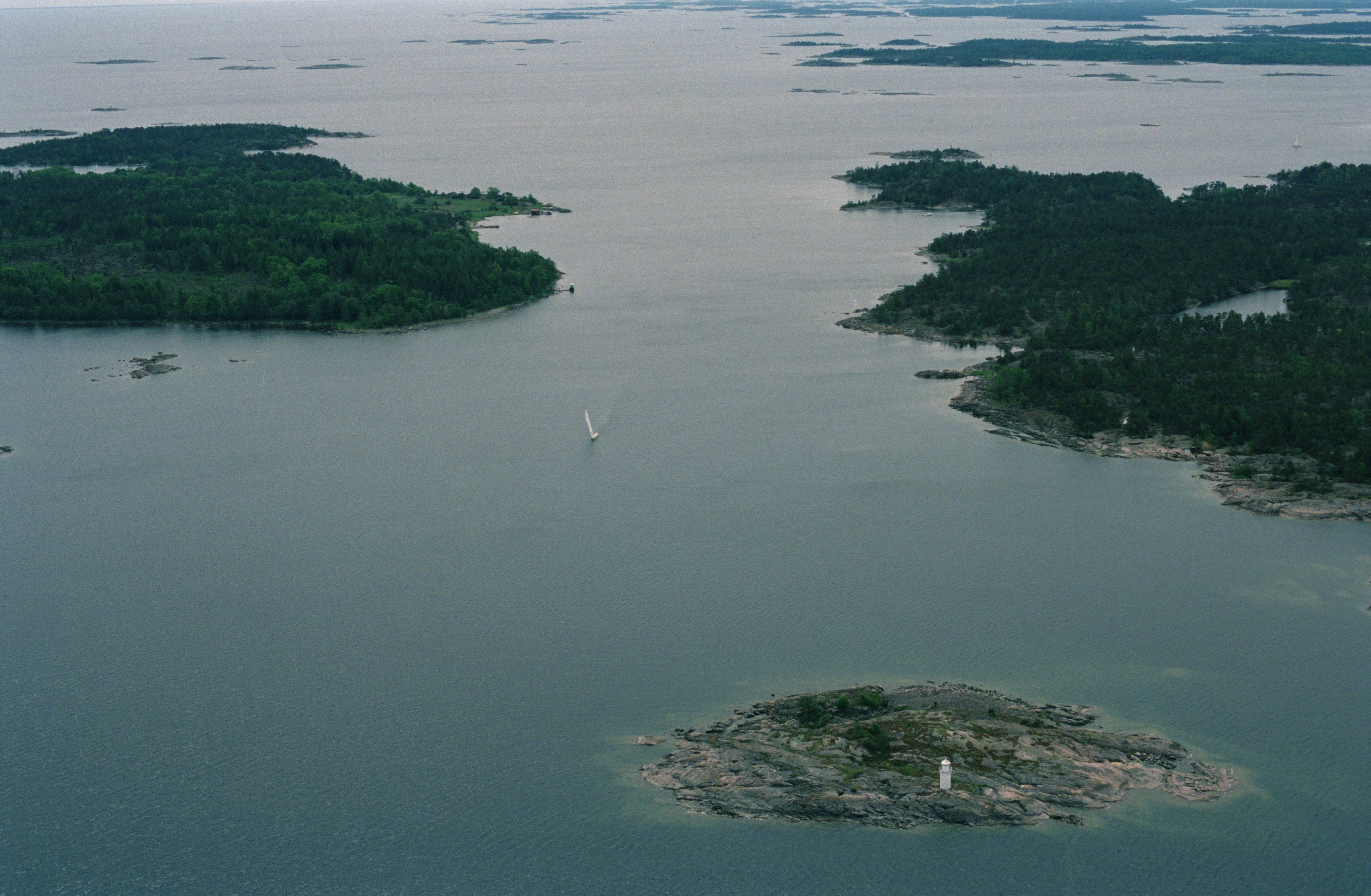 Beskrivning: Idöfjärden i Tjusts skärgård. Ön Idö till vänster med minnesmärke RAÄnr Västrum 195:1. Till höger ön Krokö. I bildens nedre del Idösunds fyrplats. Bilden är tagen mot (väderstreck): S