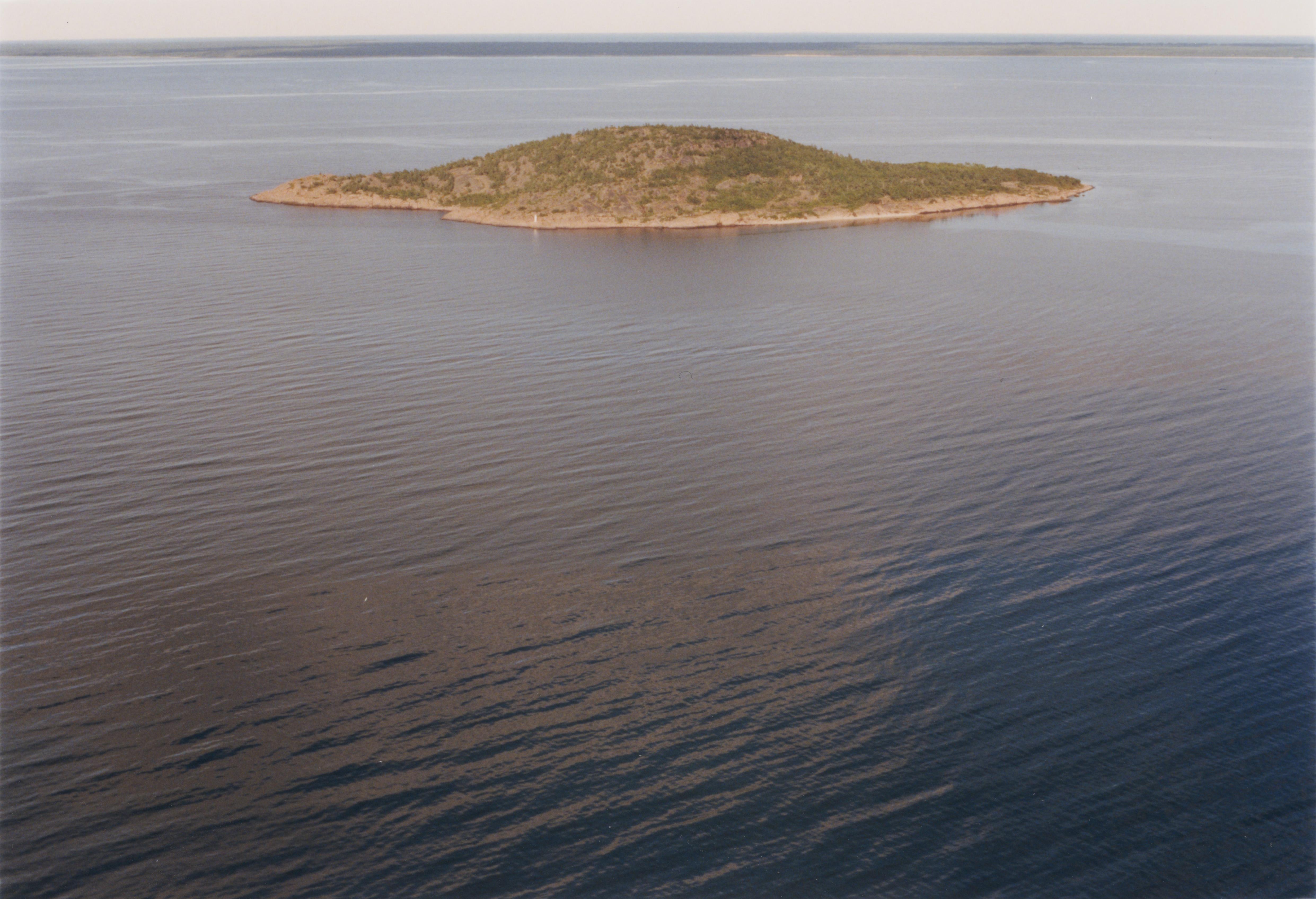 Beskrivning: Anmärkning (övrig): Bilden saknar negativ. Den är skannad år 2019 från papperskopia (c:a 10x15). Om bilden ska användas måste den skärpas och kollas noga för damm o.dyl. Beskrivning: Ön Blå Jungfrun. Nationalpark i Kalmarsund. Bilden är tagen mot (väderstreck): Ö Fotosyfte: Flygbildsdokumentation