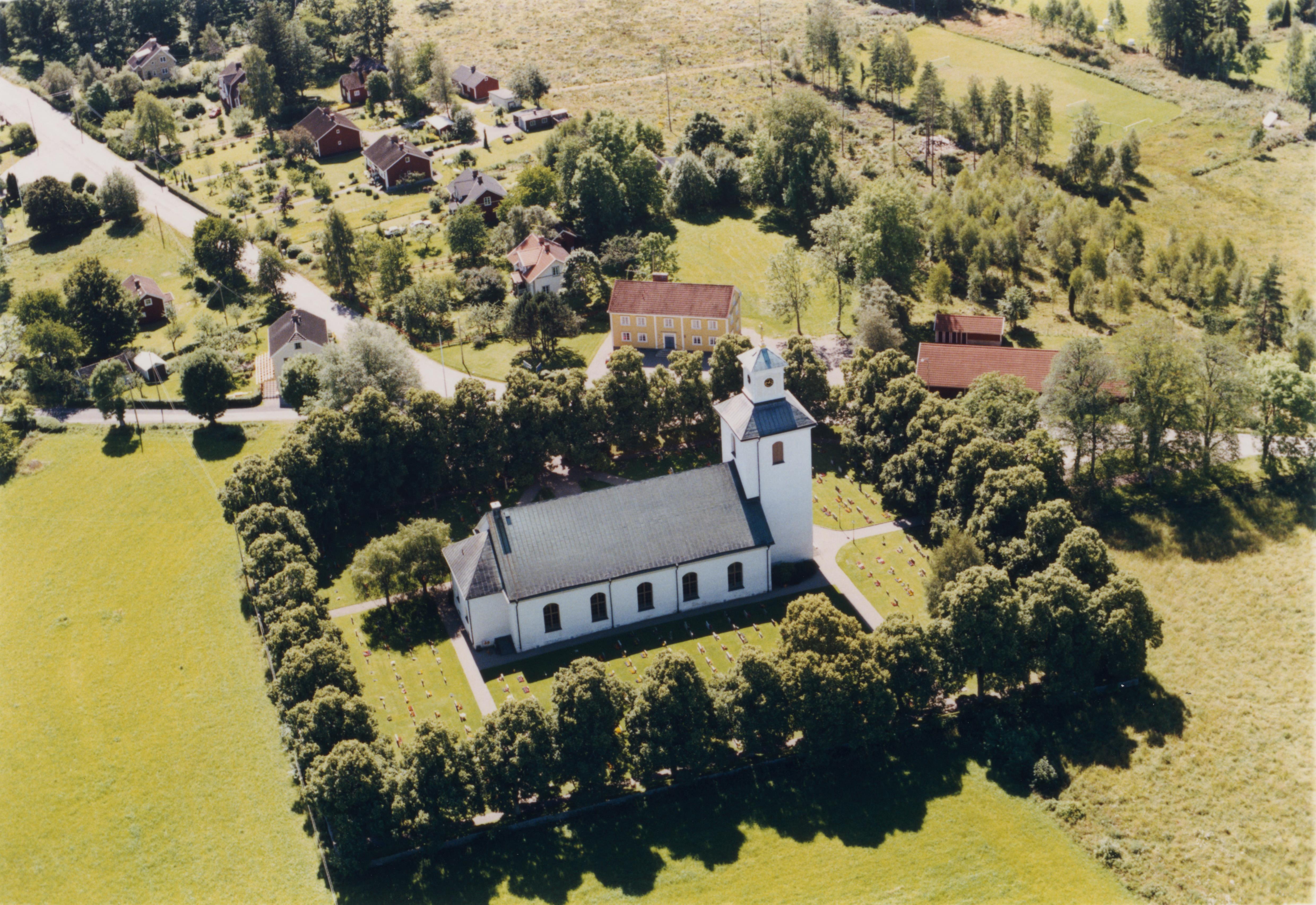 Beskrivning: Bergs kyrka. Vid kyrkan fossil åker RAÄnr Berg 48:1. Bilden är tagen mot (väderstreck): S