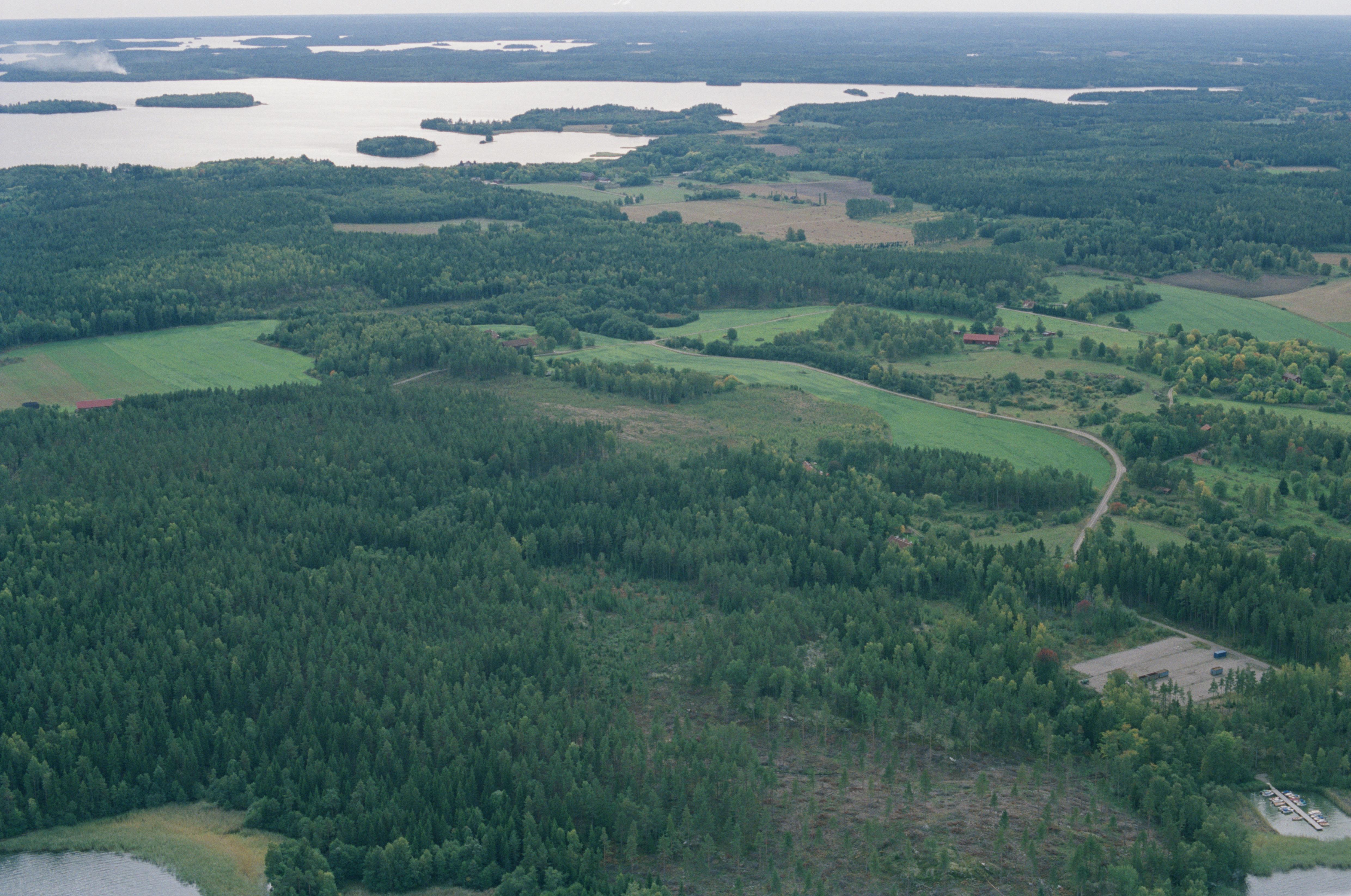 Beskrivning: Näsbyviken / Ringsösundet i Mälaren. I bildens nedre del Ropudden med stensättningar, bl.a. RAÄnr Ytterselö 105:1-3. Näsby tegelbruk vid bildens mitt. I bildens övre del området vid Mälsåkers slott. Bilden är tagen mot (väderstreck): S