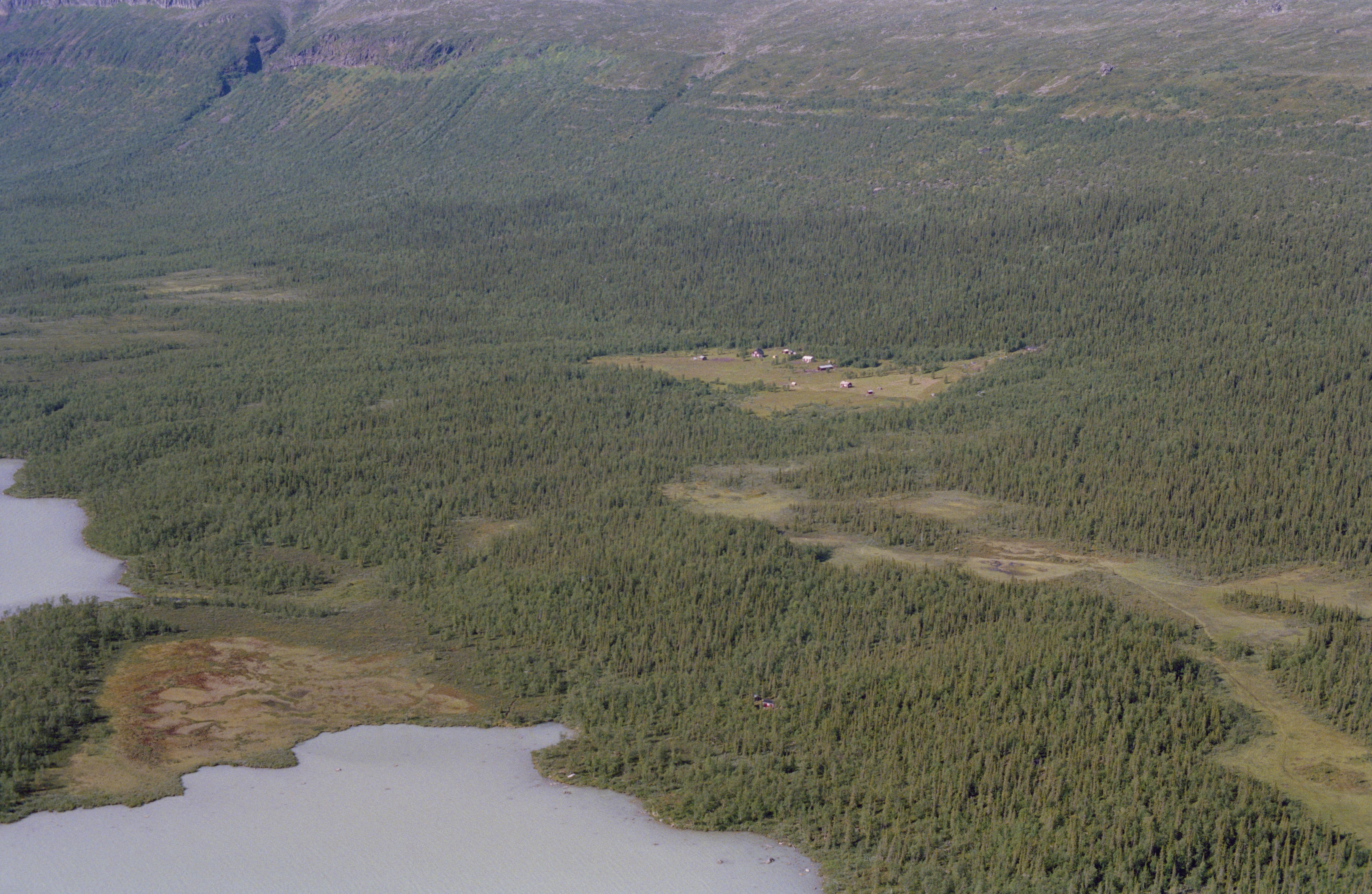 Beskrivning: Vid bildens mitt Aktse fjällhemman, norr om sjön Laitaure (Lájtávrre / Laitjaure), väster om Rapadalen (Ráhpavuobme). I Aktse en husgrund RAÄnr Jokkmokk 2223:1. Kungsleden (en vandringsled) går förbi Aktse. Området ingår i Ultevis fjällurskogs naturreservat. Bilden är tagen mot (väderstreck): NV