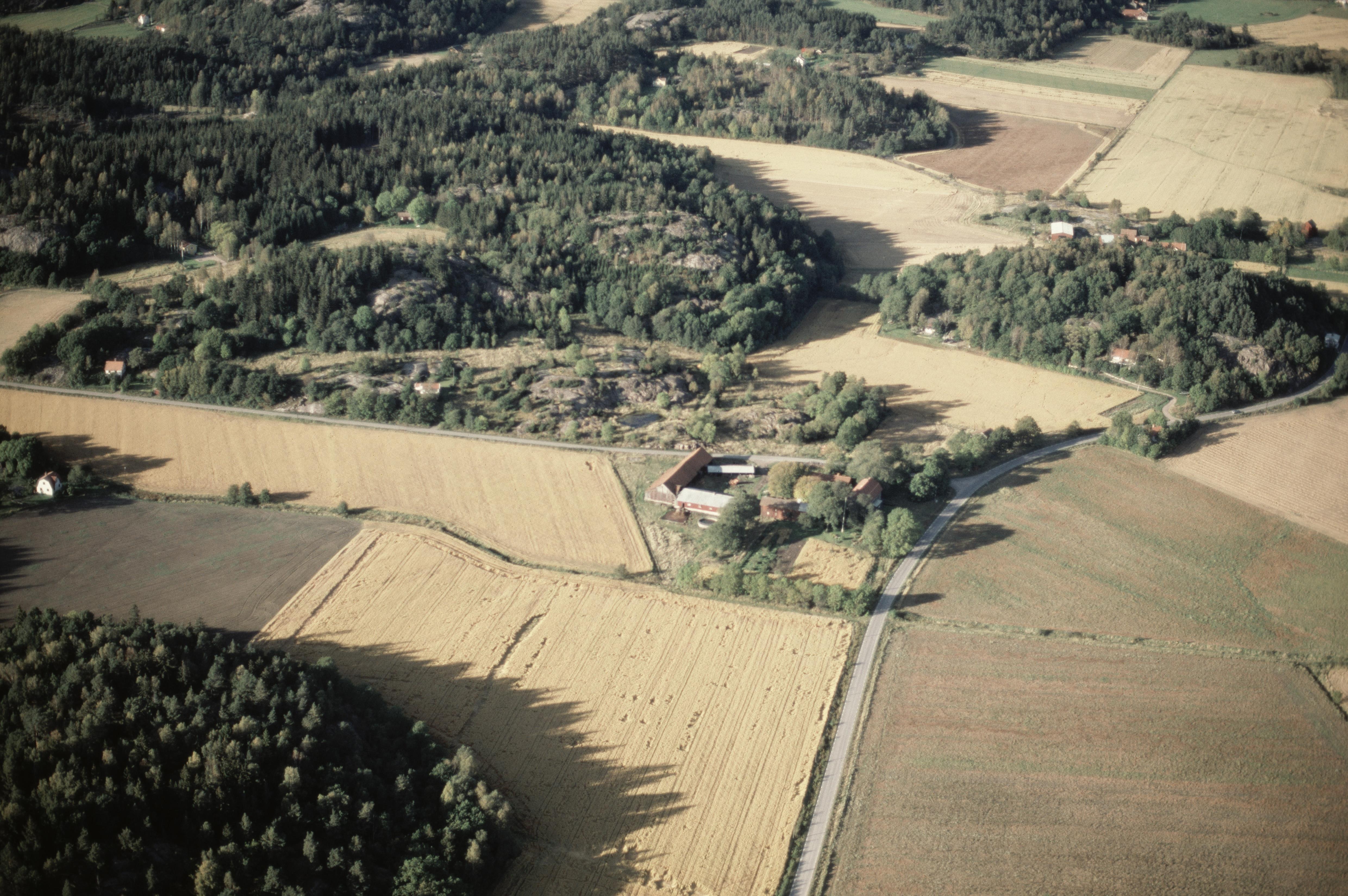 Beskrivning: Broälvens dalgång vid Vese hergård / säteri. Fornlämningar, bl.a. hällristningar RAÄnr Bro 26:1-3, m.fl. vid bildens mitt. Bilden är tagen mot (väderstreck): N