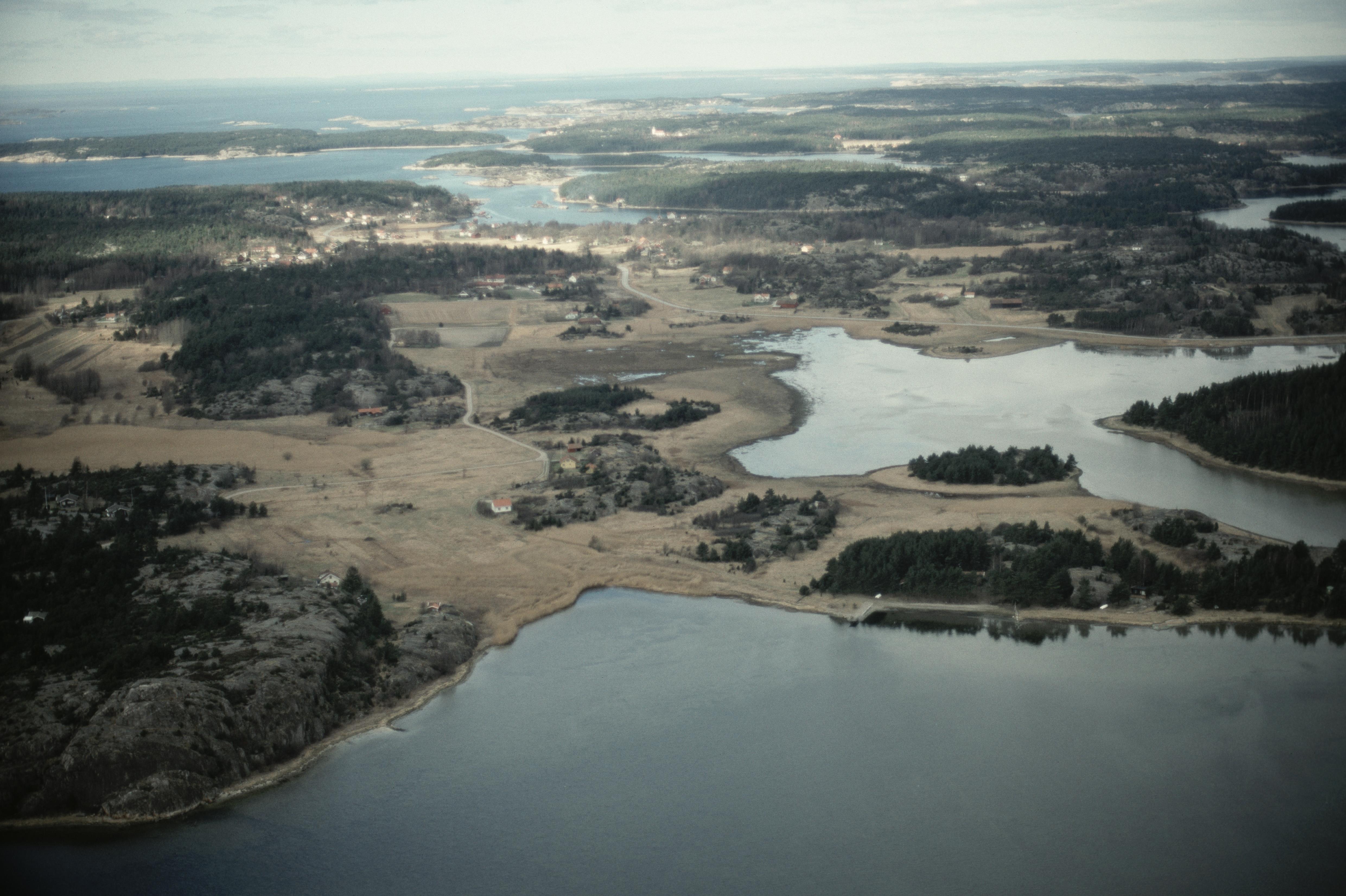 Beskrivning: Rossö (skrivs även Råssö). Humleskogen mellan vikarna Långökilen och Backeleran. Bytomt RAÄnr Tjärnö 158:1 vid bildens mitt. Valö uppe till höger. Bilden är tagen mot (väderstreck): NV