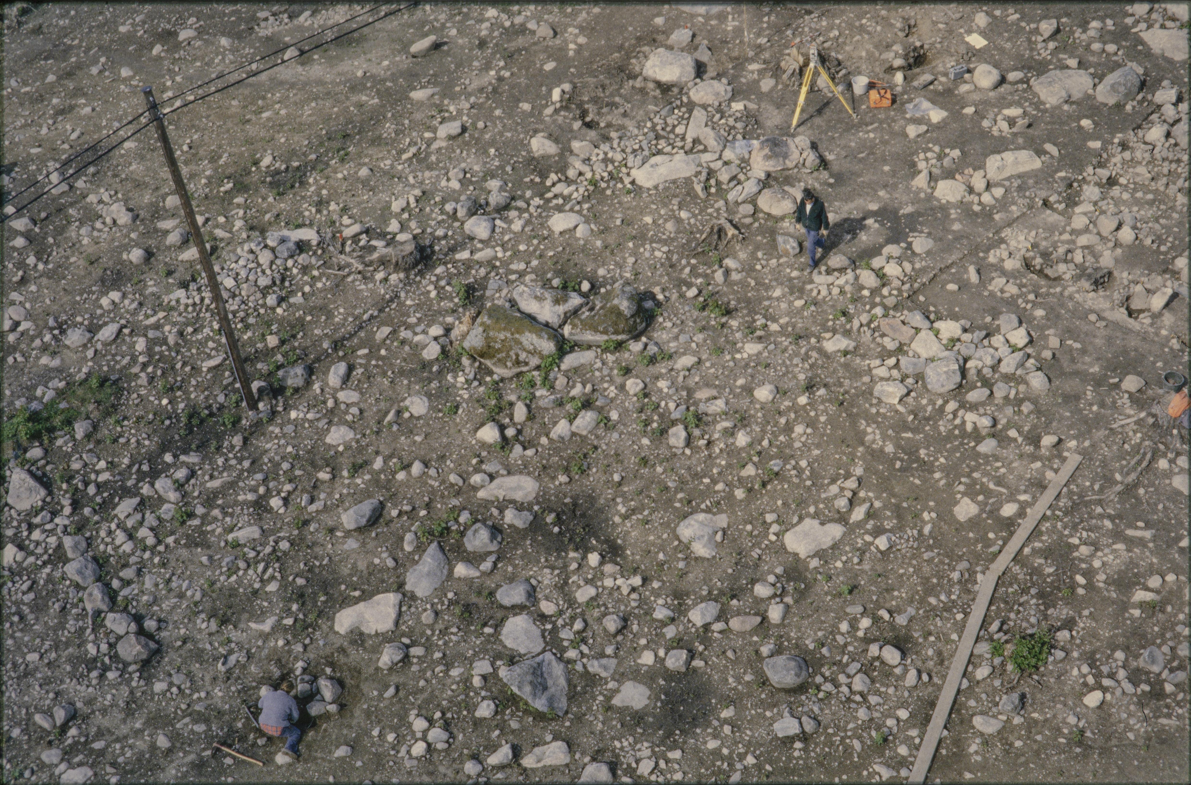 Beskrivning: Rickebyåns dalgång vid Åslunda by innan bygge av järnväg (Arlandabanan) sydost om Svartsjön. Längs bildens mitt bo- och gravplats RAÄnr Odensala 6:1, 402:1-2, 11:1, och 13:1, boplats Odensala 489:1, m.fl. Bilden är tagen mot (väderstreck): NV