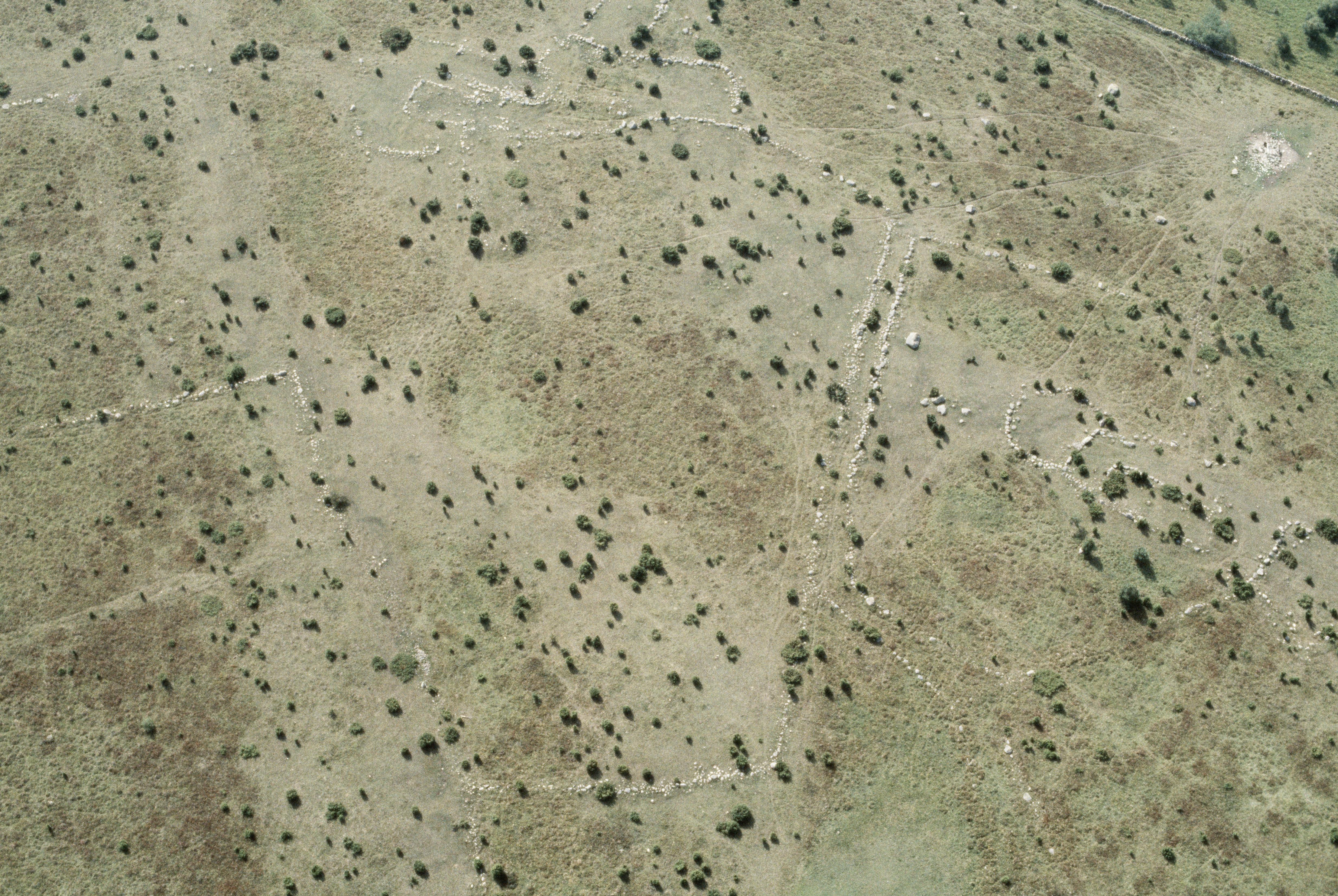 Beskrivning: Jättegravarna vid Slatekärr. Hägnadssystem RAÄnr Löt 65:12 och husgrunder RAÄnr Löt 65:5 (till höger) och 65:6 m.fl. Bilden är tagen mot (väderstreck): S