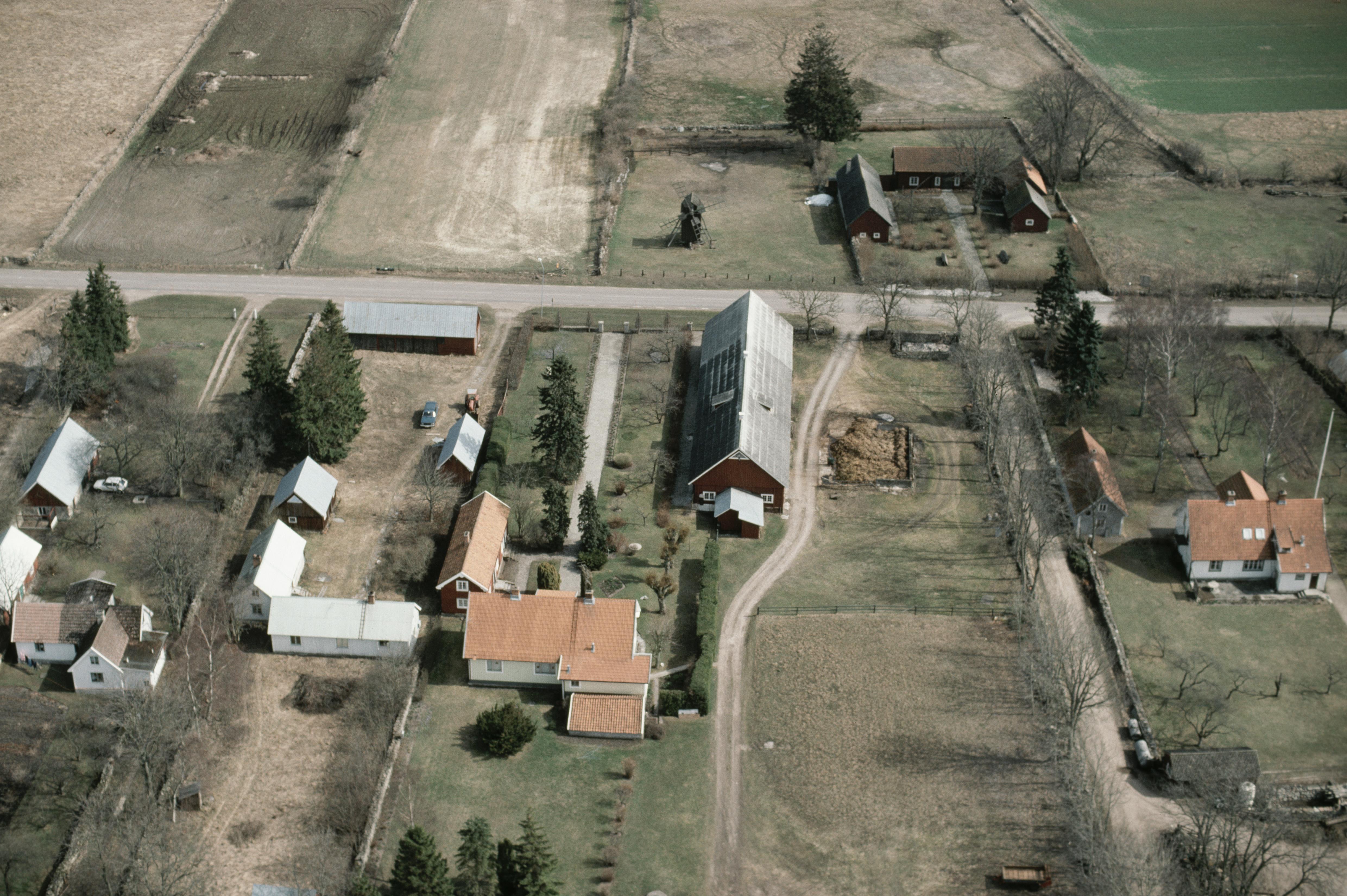 Beskrivning: Bjärby. Nere till höger lämningar efter ett kapell (helgat åt S:ta Margareta) RAÄnr Runsten 160:1. Till höger över bildens mitt gravplats RAÄnr Runsten 118:1. Bilden är tagen mot (väderstreck): Ö