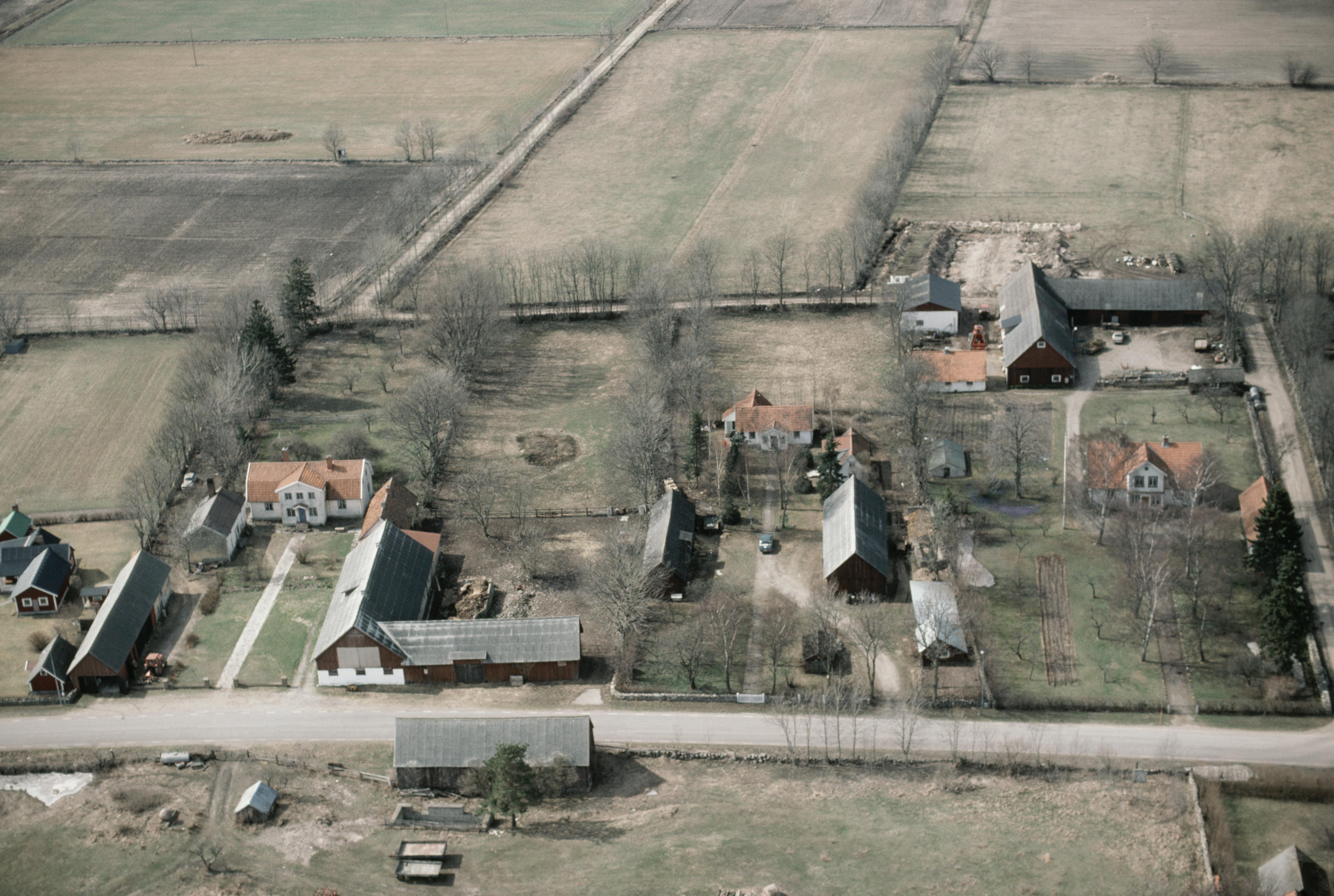Beskrivning: Bjärby. Till höger under bildens mitt gravområde RAÄnr Runsten 118:1. Bilden är tagen mot (väderstreck): V
