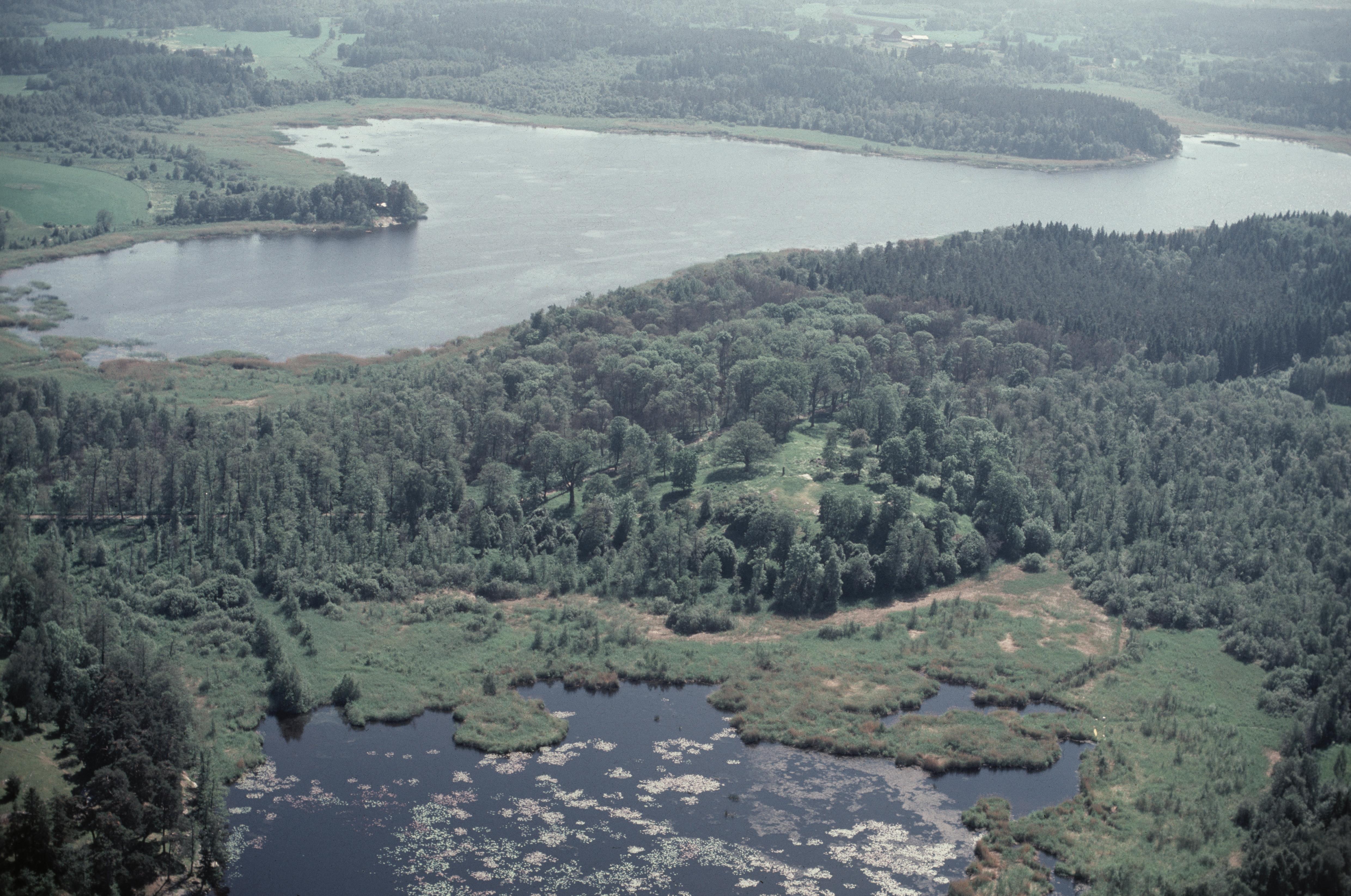Beskrivning: Mellan Vasalund och Djurgården, öster om tätorten Lindholmen. Lillsjön i bildens nedre del, Storsjön i bildens övre del. Mellan sjöarna, vid bildens mitt, Vasakullen borgruin RAÄnr Orkesta 60:1. Bilden är tagen mot (väderstreck): S