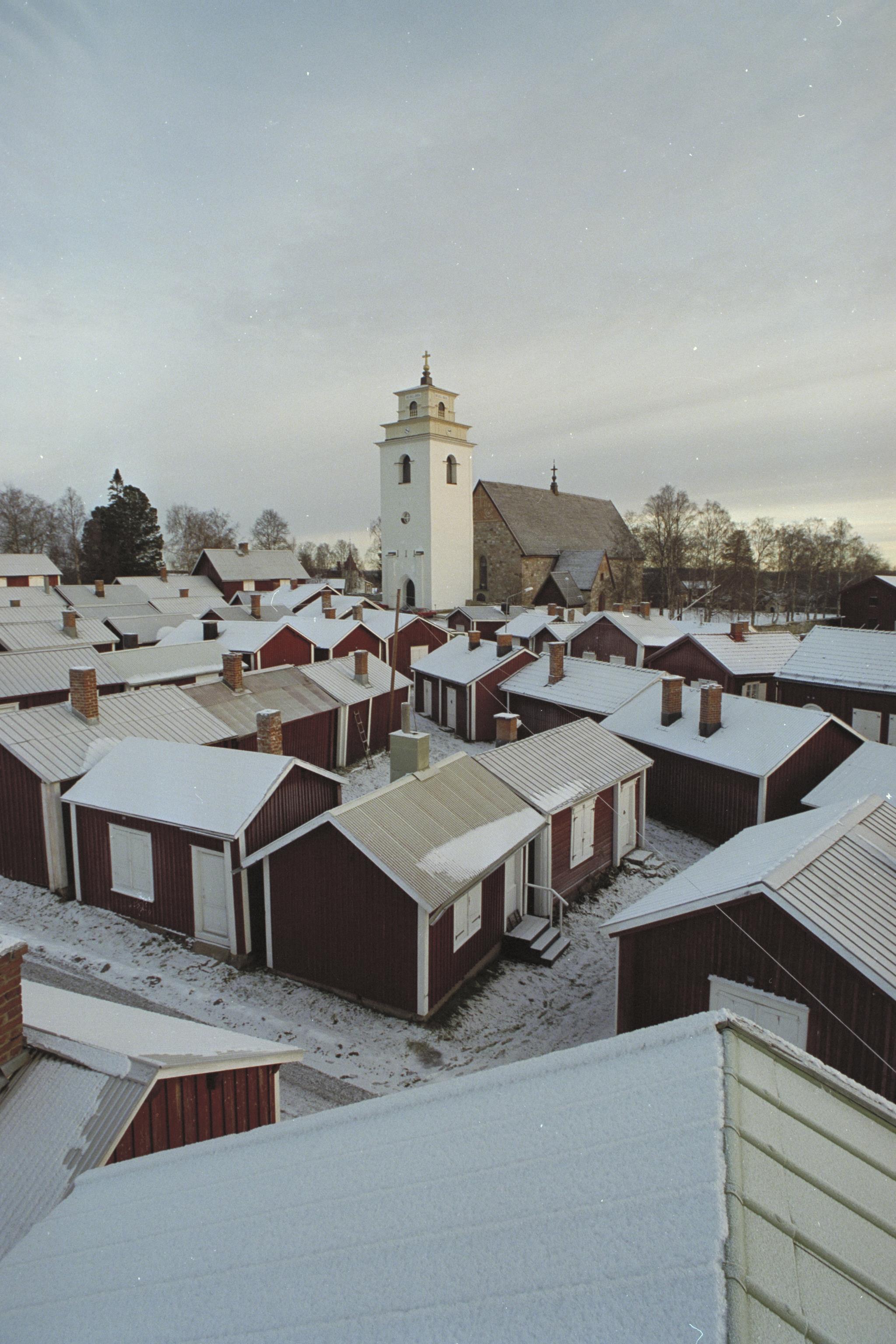 Beskrivning: Nederluleå kyrka i bildens mitt.