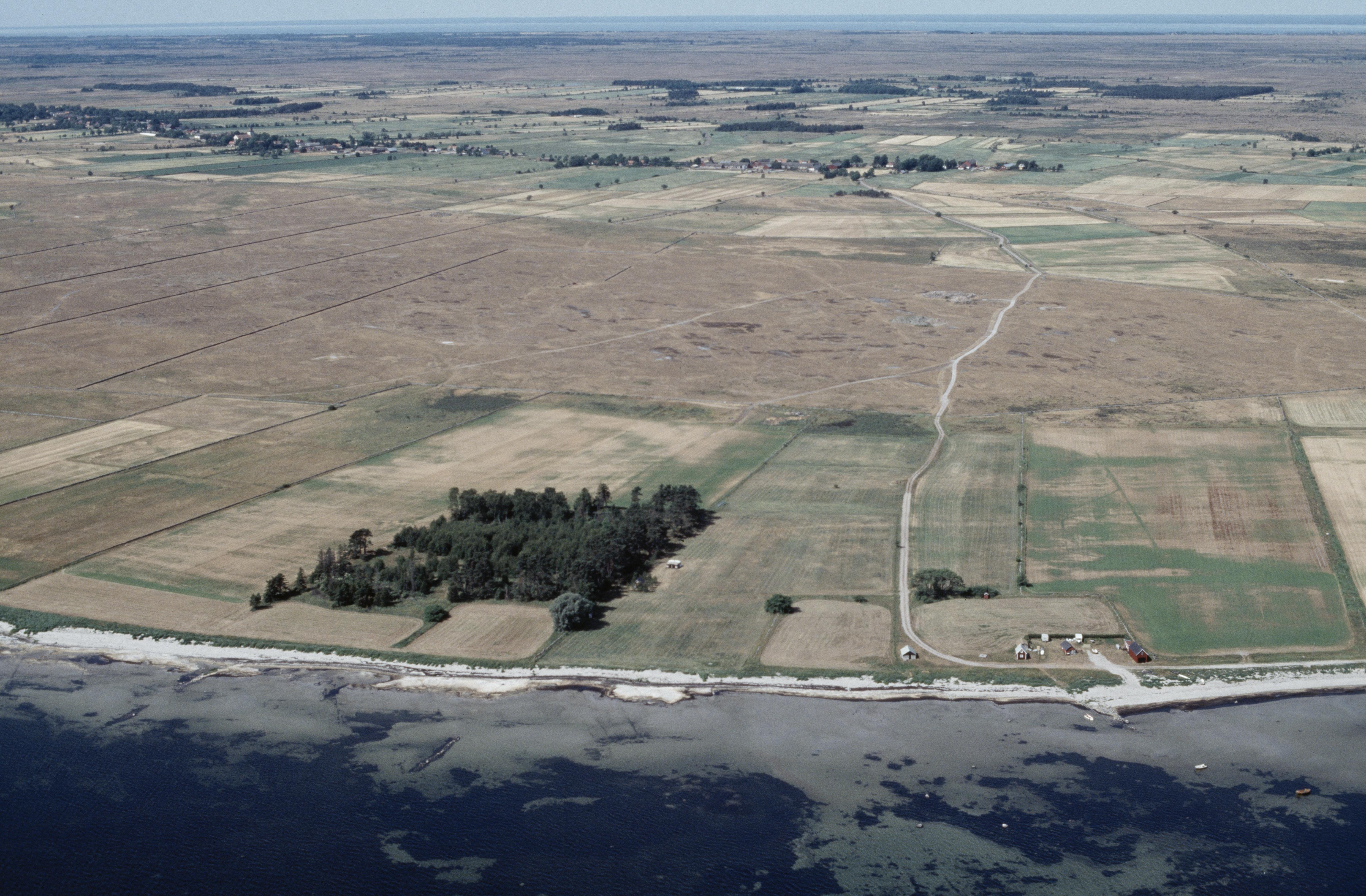 Beskrivning: Strandängar på öster om Stora Brunneby. Vid bildens mitt stensättning RAÄnr Stenåsa 61:2 och hällristning Stenåsa 128:1. Bilden är tagen mot (väderstreck): VSV
