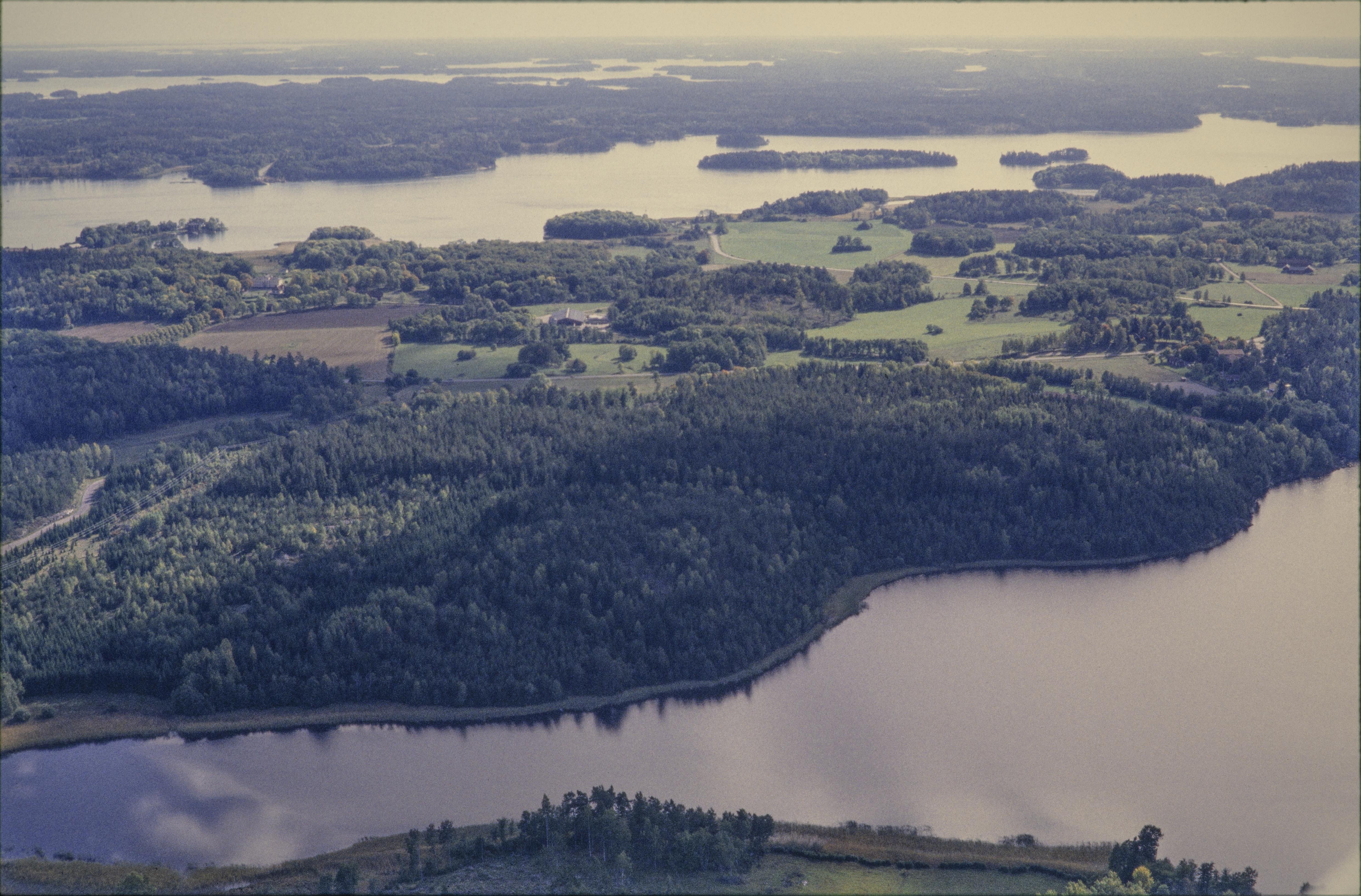 Beskrivning: I bildens nedre del Losjön. Till vänster över bildens mitt Östanå slott och Ennäsudden. I bildens högra kant Roslags-Kulla kyrkby. I bildens övre del Roslagens skärgård mot Ljusterö socken. Bilden är tagen mot (väderstreck): SO
