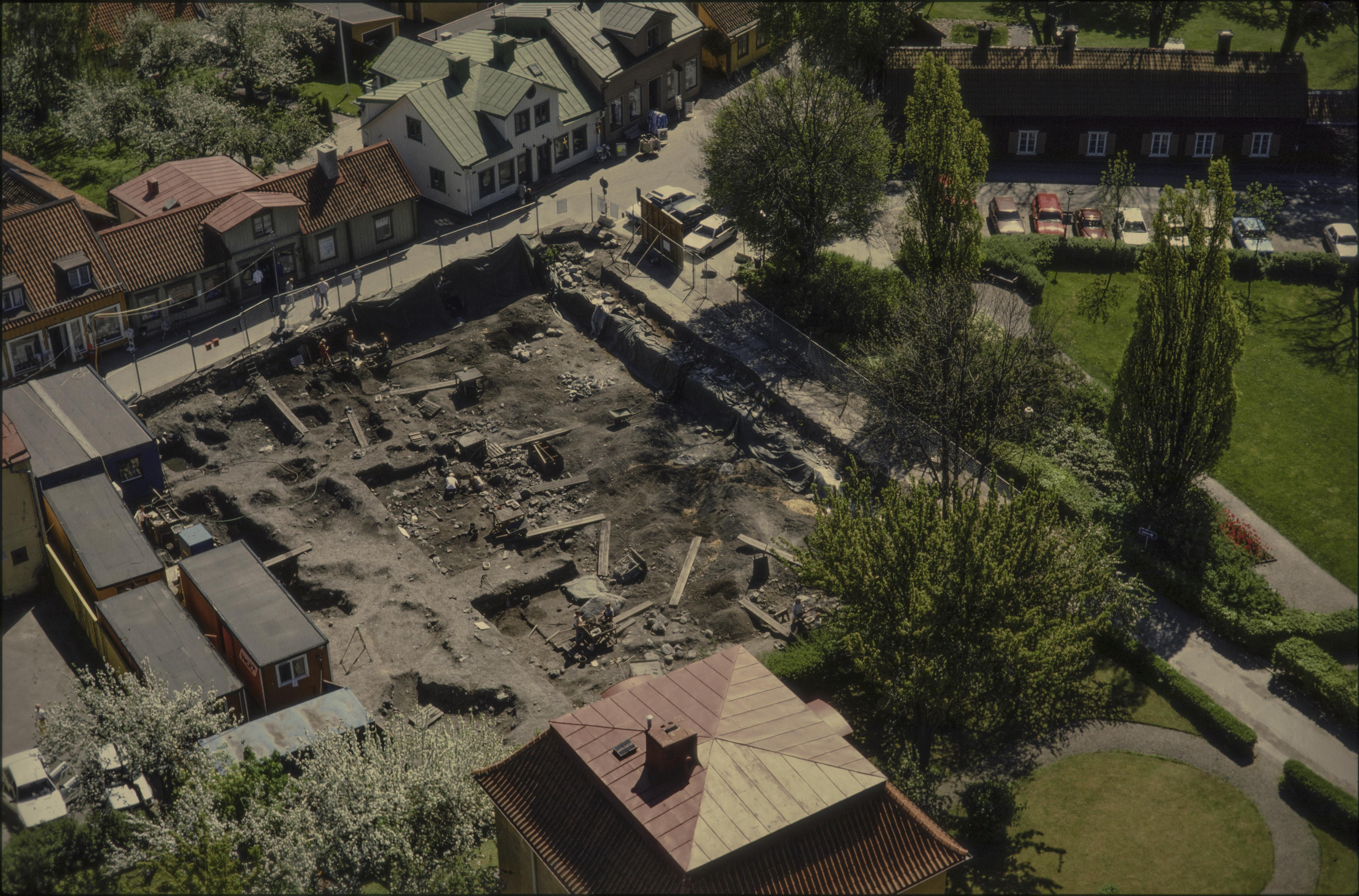 Beskrivning: Sigtuna stad vid Sigtunafjärden i Mälaren. Arkeologisk undersökning vid Ladugränd / Lilla torget RAÄnr Sigtuna 277:1 i stadslager RAÄnr Sigtuna 195:1. Bilden är tagen mot (väderstreck): SV