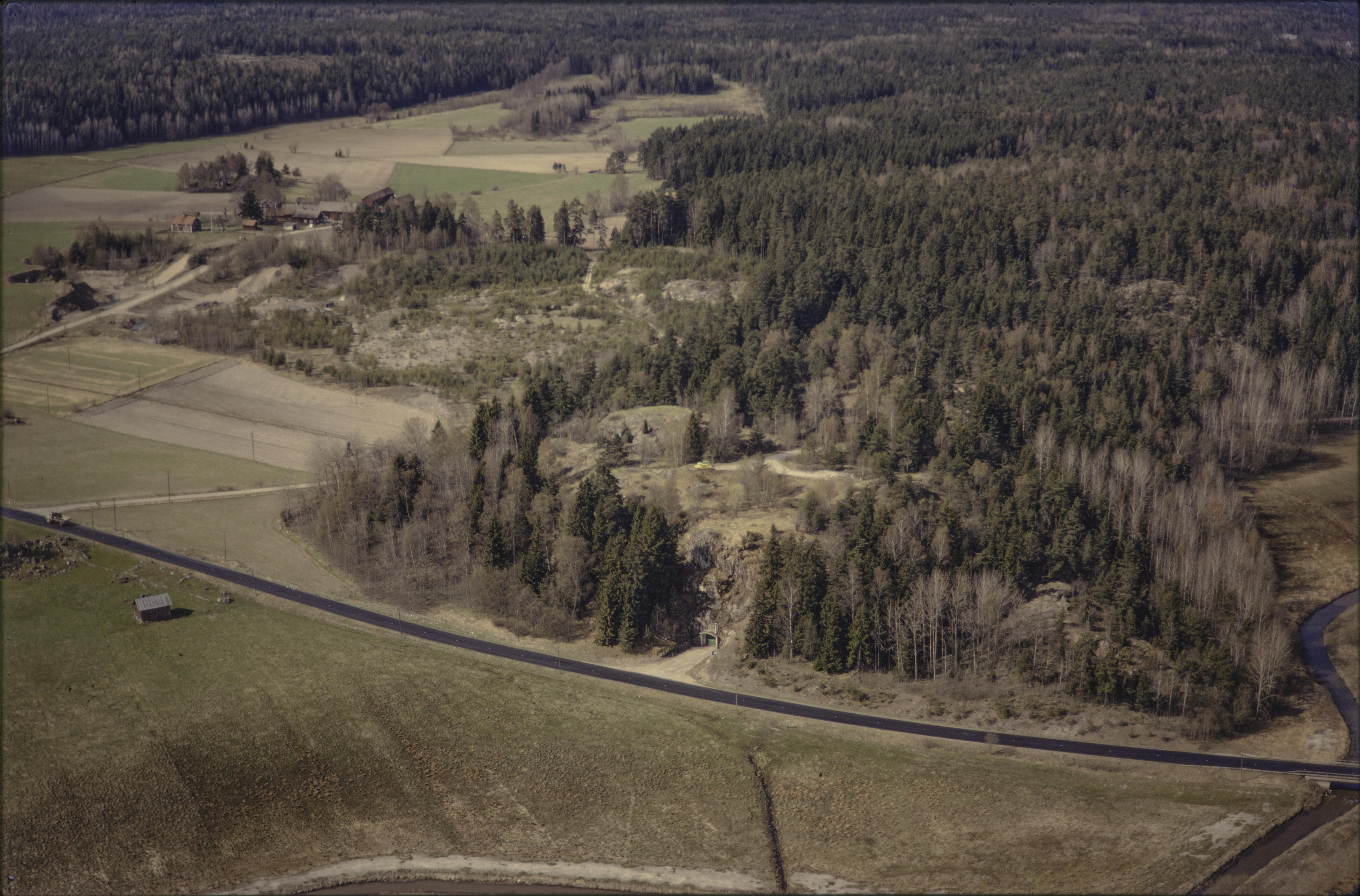 Beskrivning: Vid bildens mitt Hamnbrinkens fornborg RAÄnr Skederid 16:1 och gravfält Skederid 17:1 vid Vretaån i Darsgärde by. Bilden är tagen mot (väderstreck): VSV