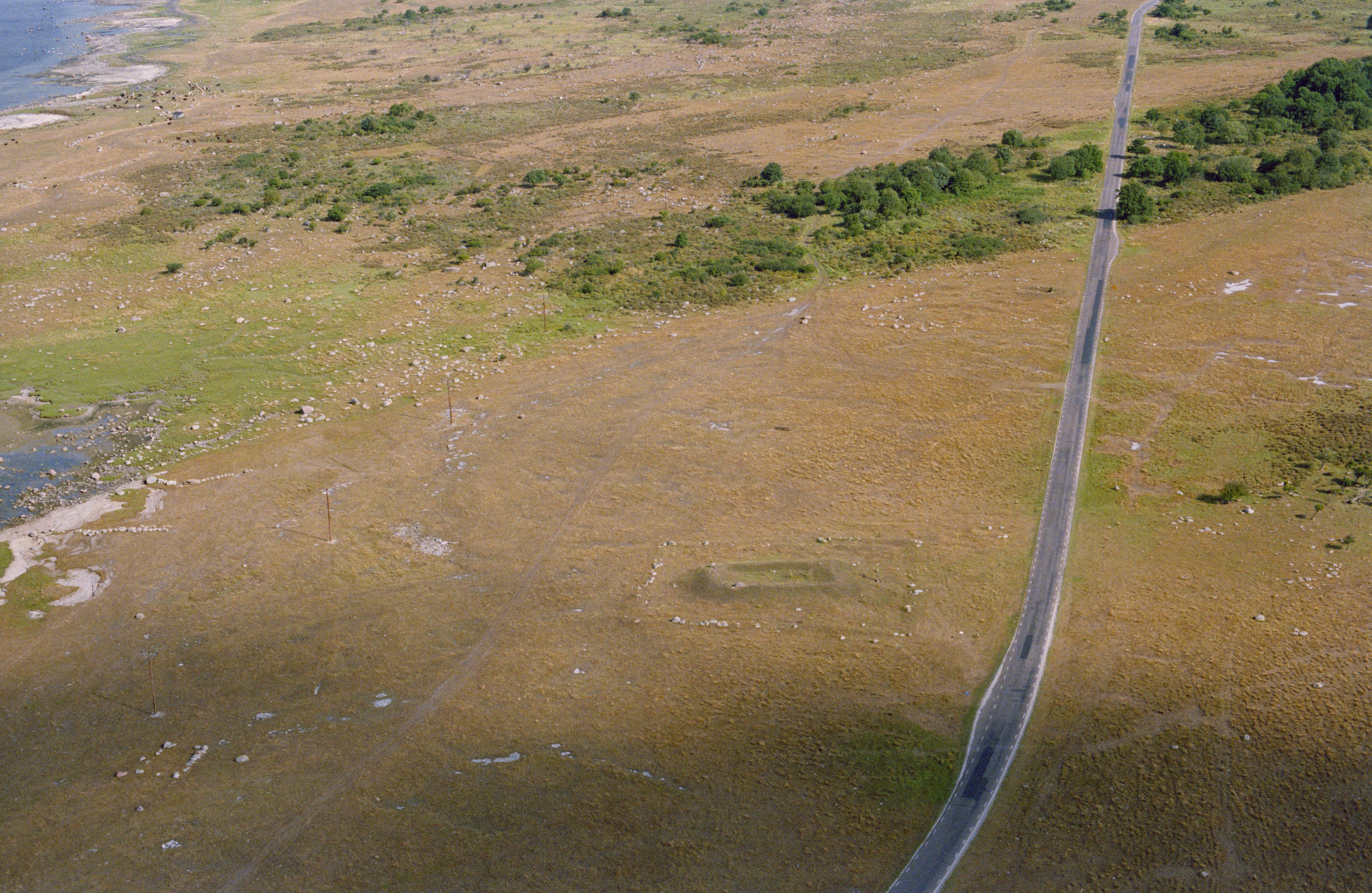 Beskrivning: Anmärkning (övrig): Riksintresse-nr/namn: H1 - Ås. Socken: Ås och Ventlinge socknar. Motivering: Sydöländskt odlingslandskap som präglats av lång kontinuitet och differentierat näringsfång och är ett gott exempel på statens etablering i ett rikspolitiskt gränsområde. (Bymiljö). - Uttryck för riksintresset: Omfattande och skiftande fornlämningsmiljöer med mycket omfattande gravfältskomplex och husgrunder från järnålder. Ås sockenkyrka med östtorn från 1100-talet med till hemmanet Prästtorpet hörande fossil åkermark. Lämningar av Kyrkhamns fiske- och handelsplats med kapellruin från tidig medeltid till 1600-talets början, Sveabod. Ottenby kungsgård med medeltida anor och bebyggelse från 1700- och 1800-talen samt(…) Texten i detta fält har förkortats vid migrering till e-arkivet. Se filbilagan extra.xml för fullständig information under note_archivist. Beskrivning: Sankt Johannes kapell (ruin) RAÄnr Ås 2:1 vid Kyrkhamn / Kapellviken, Ölands södra udde. Bilden är tagen mot (väderstreck): N Fotosyfte: Flygbildsdokumentation