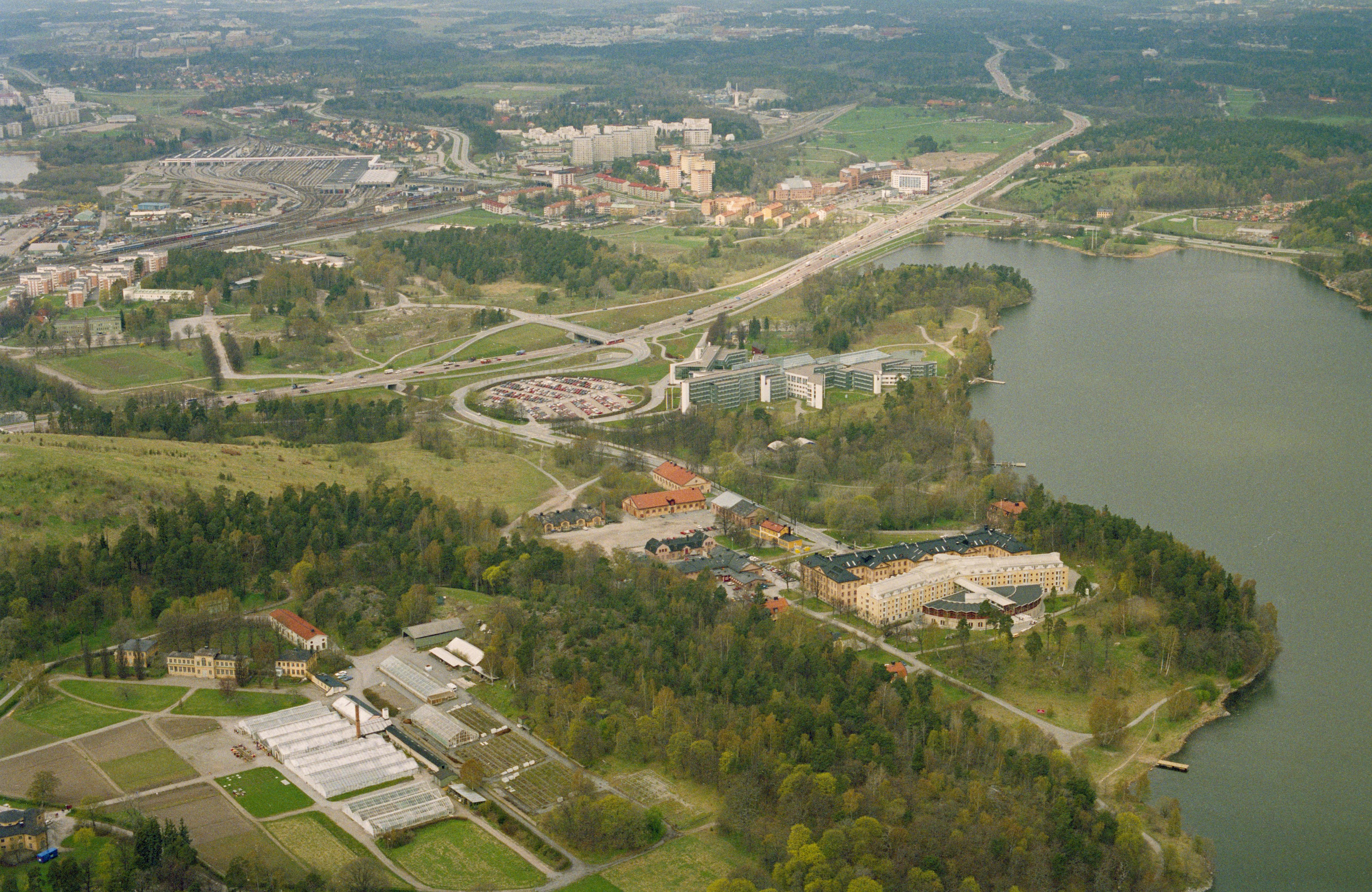 Beskrivning: Nere till höger "The SAS Frösundavik Office Building" i ett tidigare militärt område och byggnadsminne Solna 31:1 vid Brunnsviken. Järva krog och Ulriksdal till höger i bildens övre del. Bilden är tagen mot (väderstreck): NV