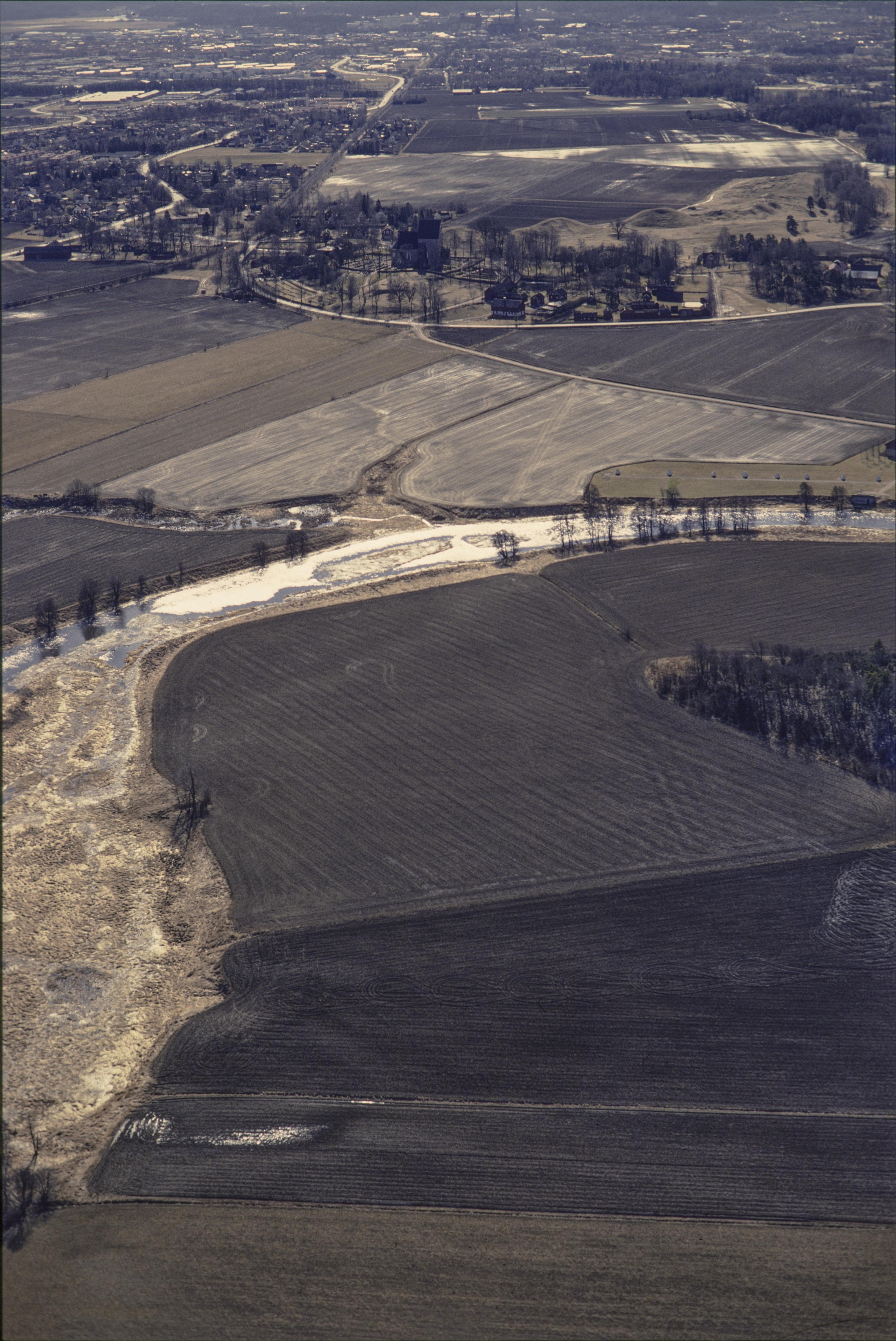 Beskrivning: Fyrisåns dalgång. Över bildens mitt Gamla Uppsala kyrka RAÄnr Uppsala 774, Kungshögarna gravfält Uppsala 123:1, boplats Uppsala 263:1 m.fl. Bilden är tagen mot (väderstreck): S
