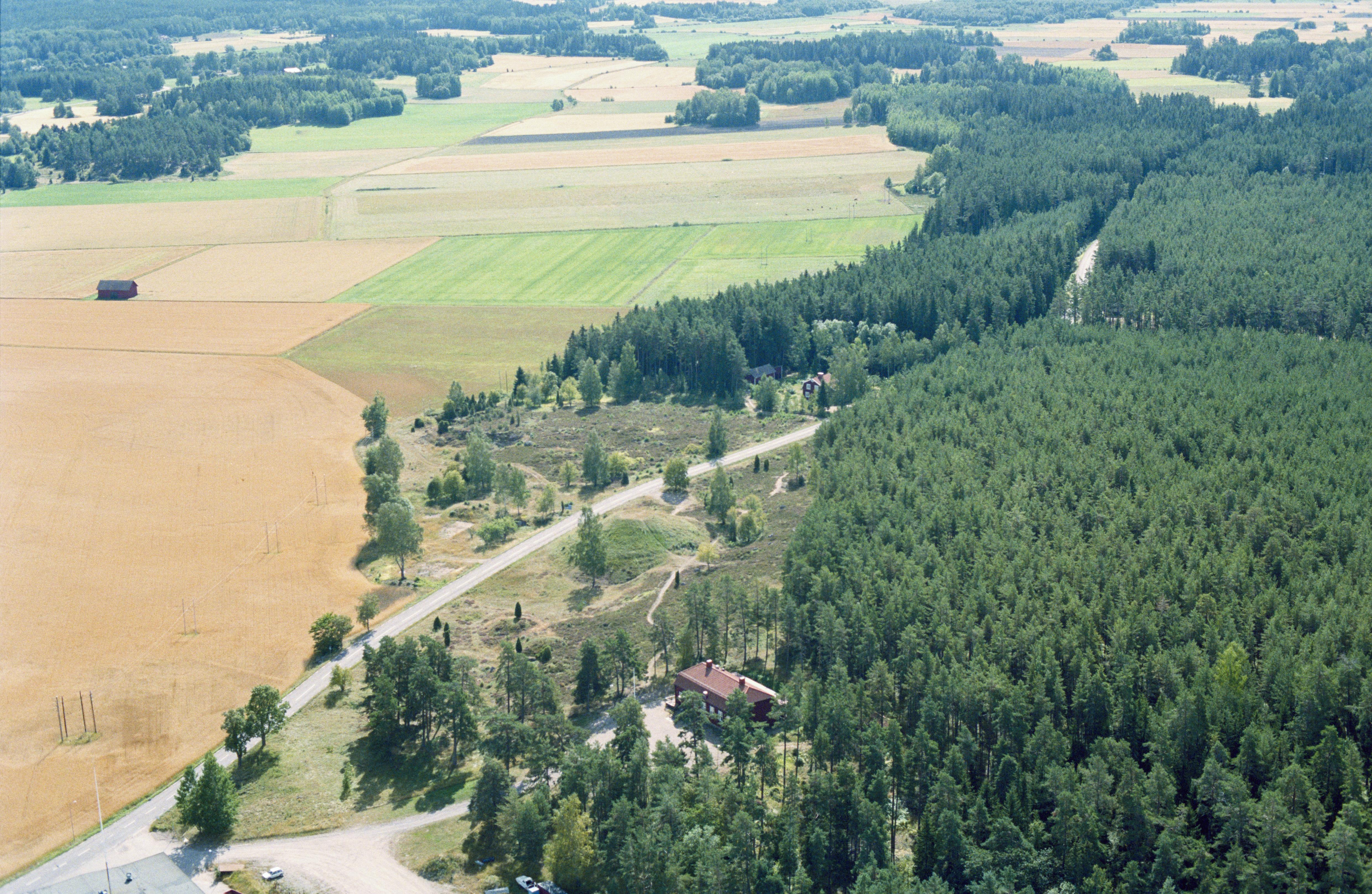 Beskrivning: Husby. Till vänster under bildens mitt Ottarshögen RAÄnr Vendel 1:1 vid gravfälten RAÄnr Vendel 2:1 och 3:1. Bilden är tagen mot (väderstreck): SSO