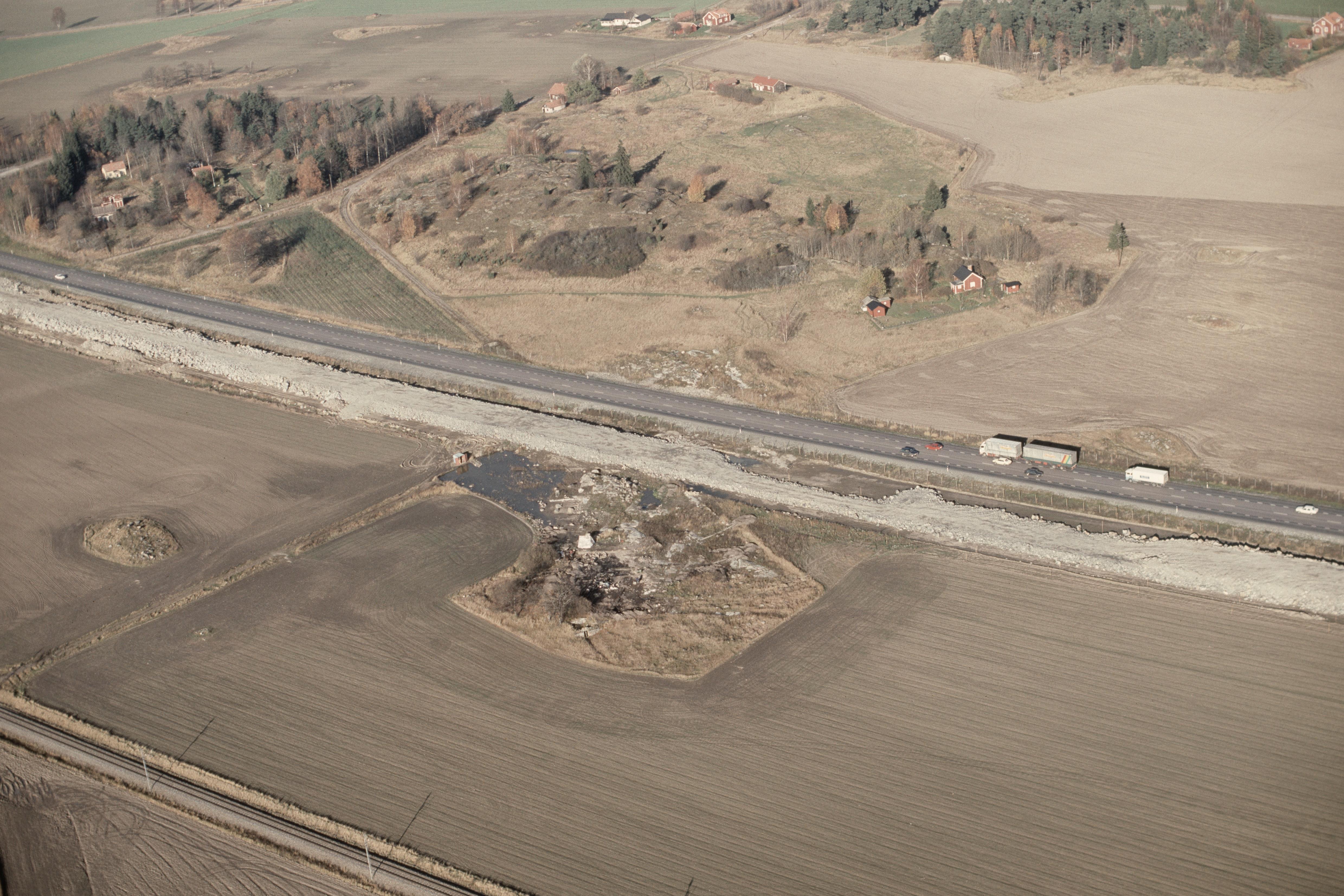 Beskrivning: Arkeologiska undersökningar innan bygge av väg E18 vid Apalle, Högsta och Pollista. Gravfält Dragonbacken RAÄnr Övergran 9:1 och Pollista gamla tomt RAÄnr Övergran 228:1. Bilden är tagen mot (väderstreck): NV