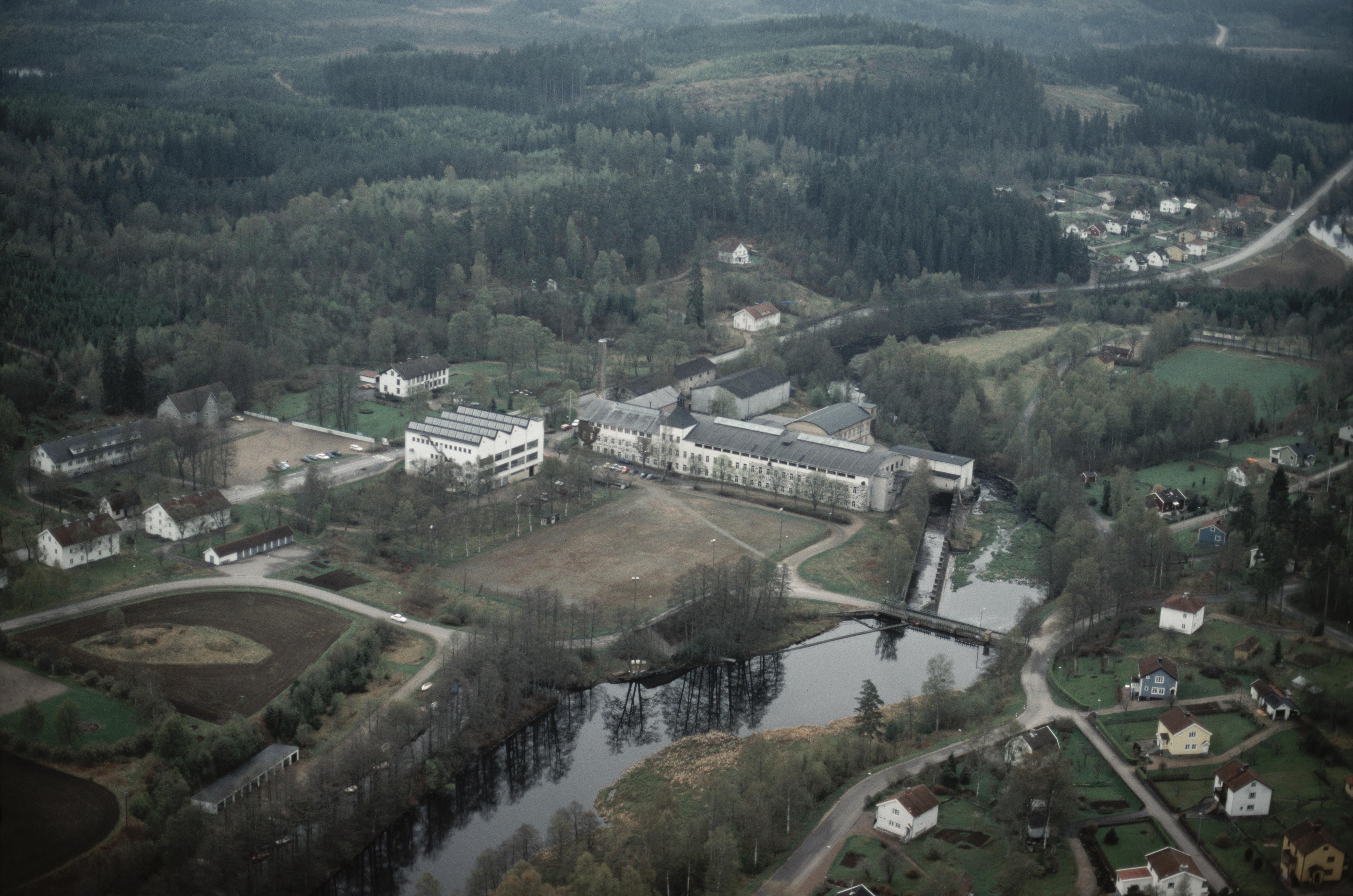 Beskrivning: Rydals bruk i ån Viskans dalgång. Rydals bomullsspinneri (textilindustri). Bilden är tagen mot (väderstreck): S