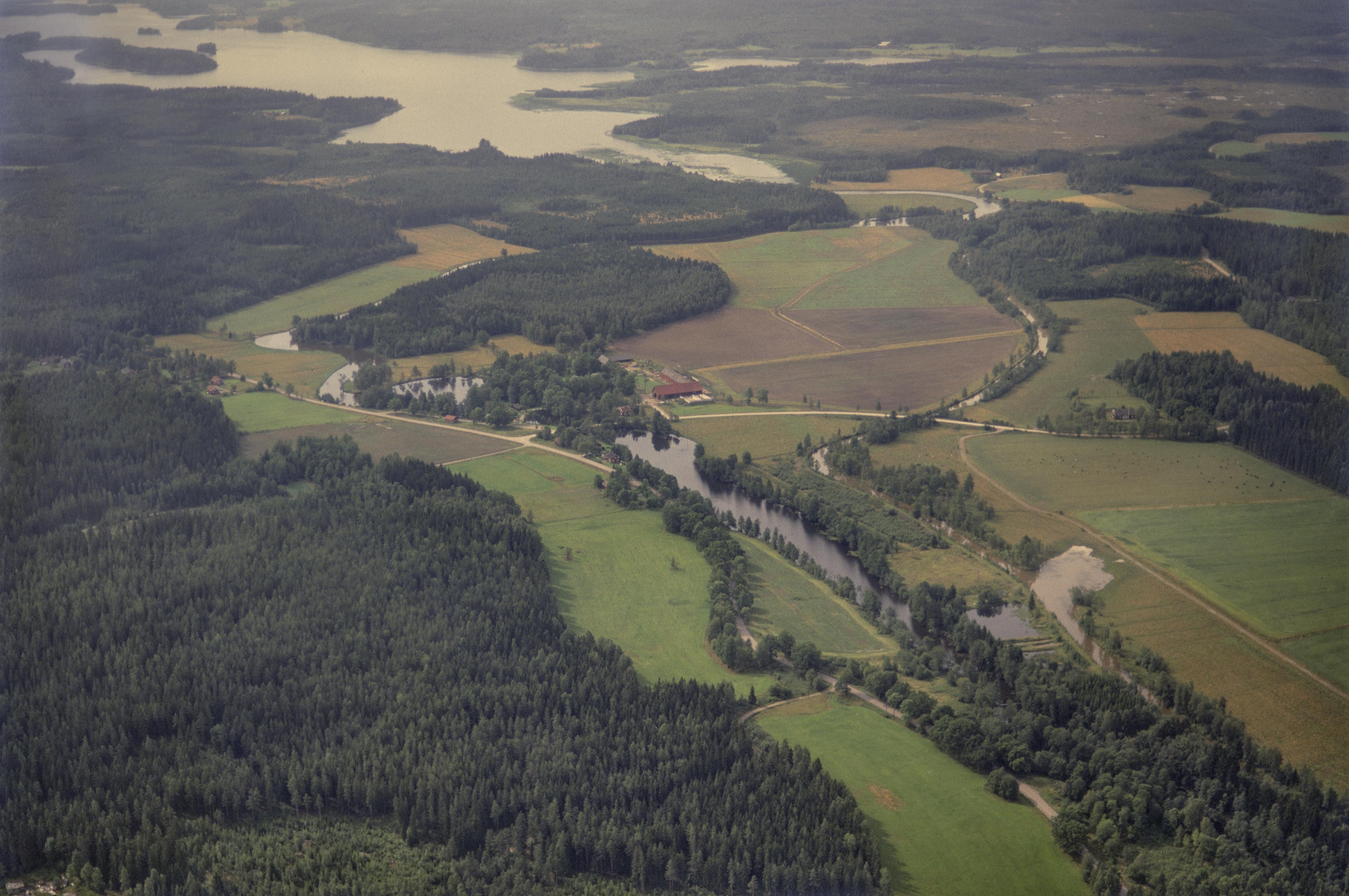 Beskrivning: Bjurbäckskanalen och Bjurbäcksälven mot sjön Stor-Lungen. Vid bildens mitt bro RAÄnr Lungsund 4:1 och hyttområde Lungsund 6:1. Bilden är tagen mot (väderstreck): SSV