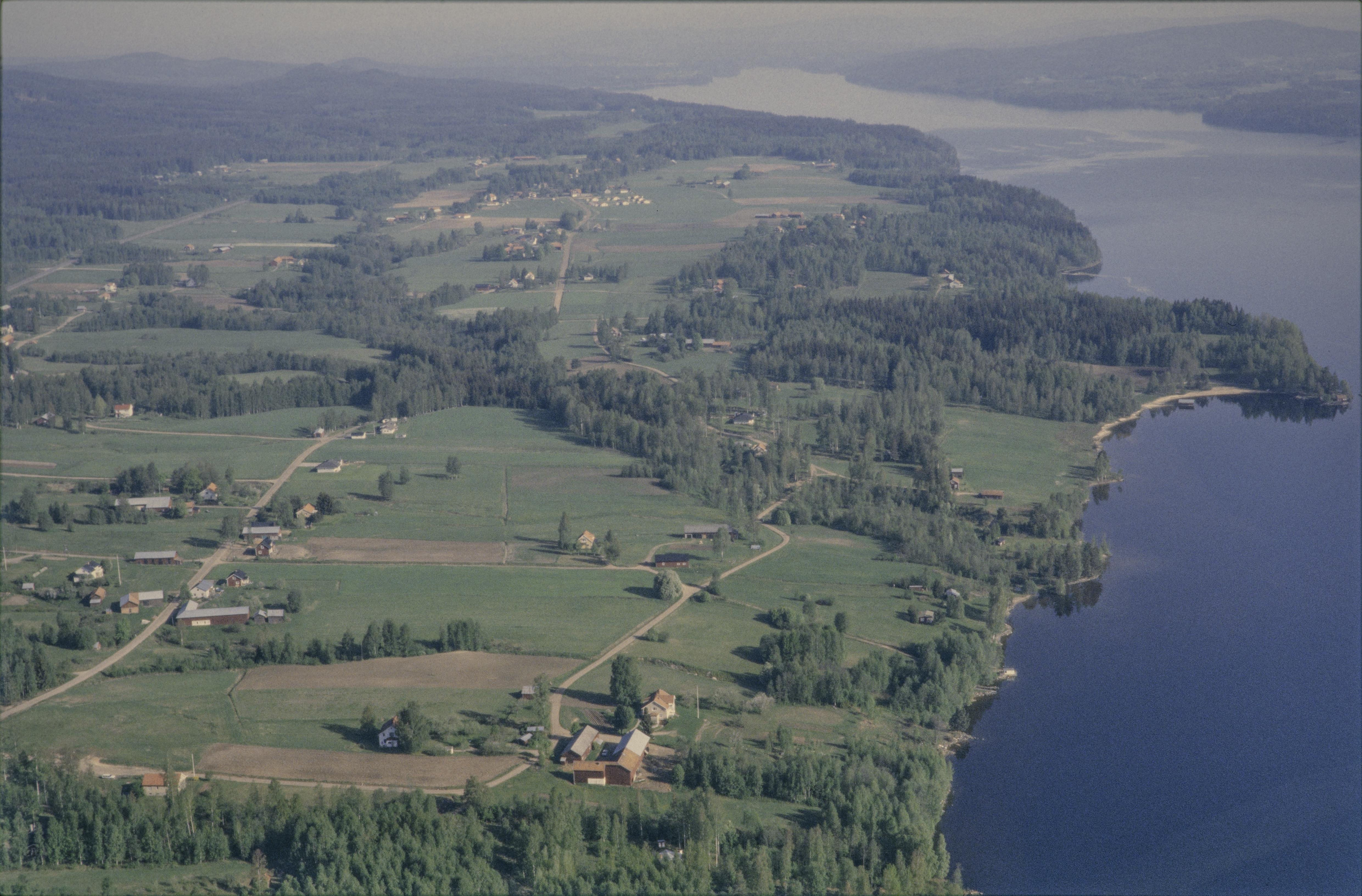 Beskrivning: Bjälveruds by på västra sidan av sjön Övre Fryken. Vid Karlsvik till höger om bildens mitt fyndplats (trindyxa) RAÄnr Lysvik 179. Bilden är tagen mot (väderstreck): NNV