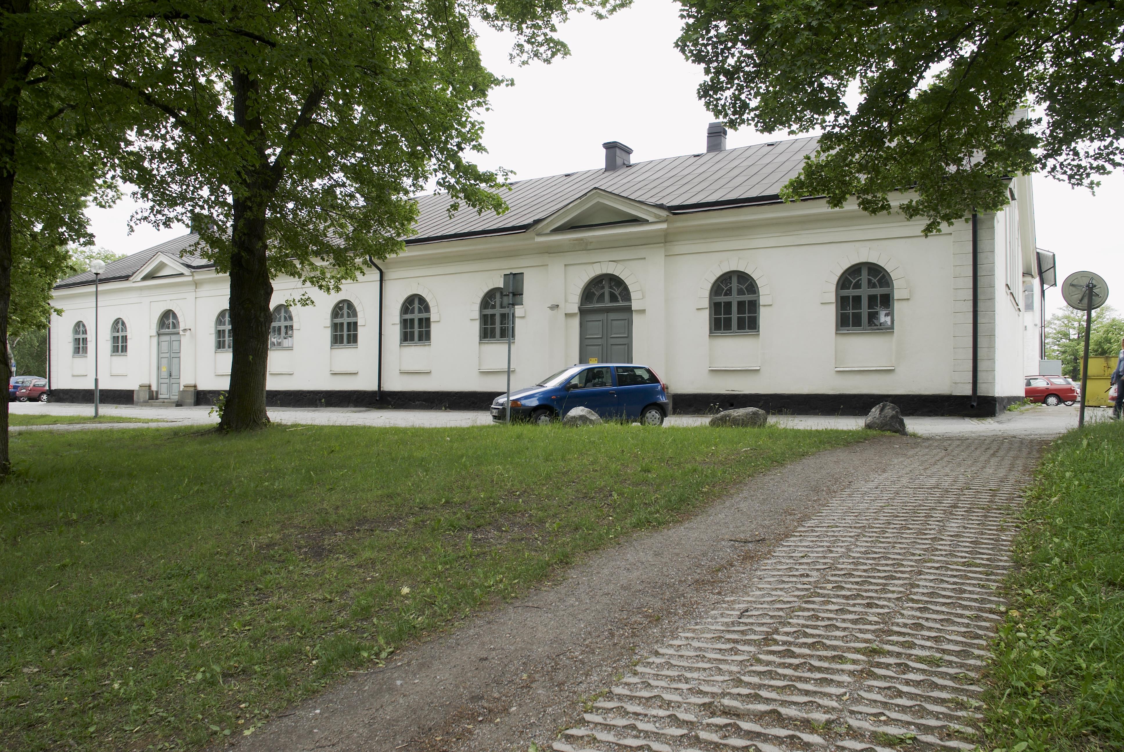 Beskrivning: Fatburen. 1936 inrättades Arméns gymnastik- och idrottsskola, GIS. Numera gymnastikhall/idrottshus.