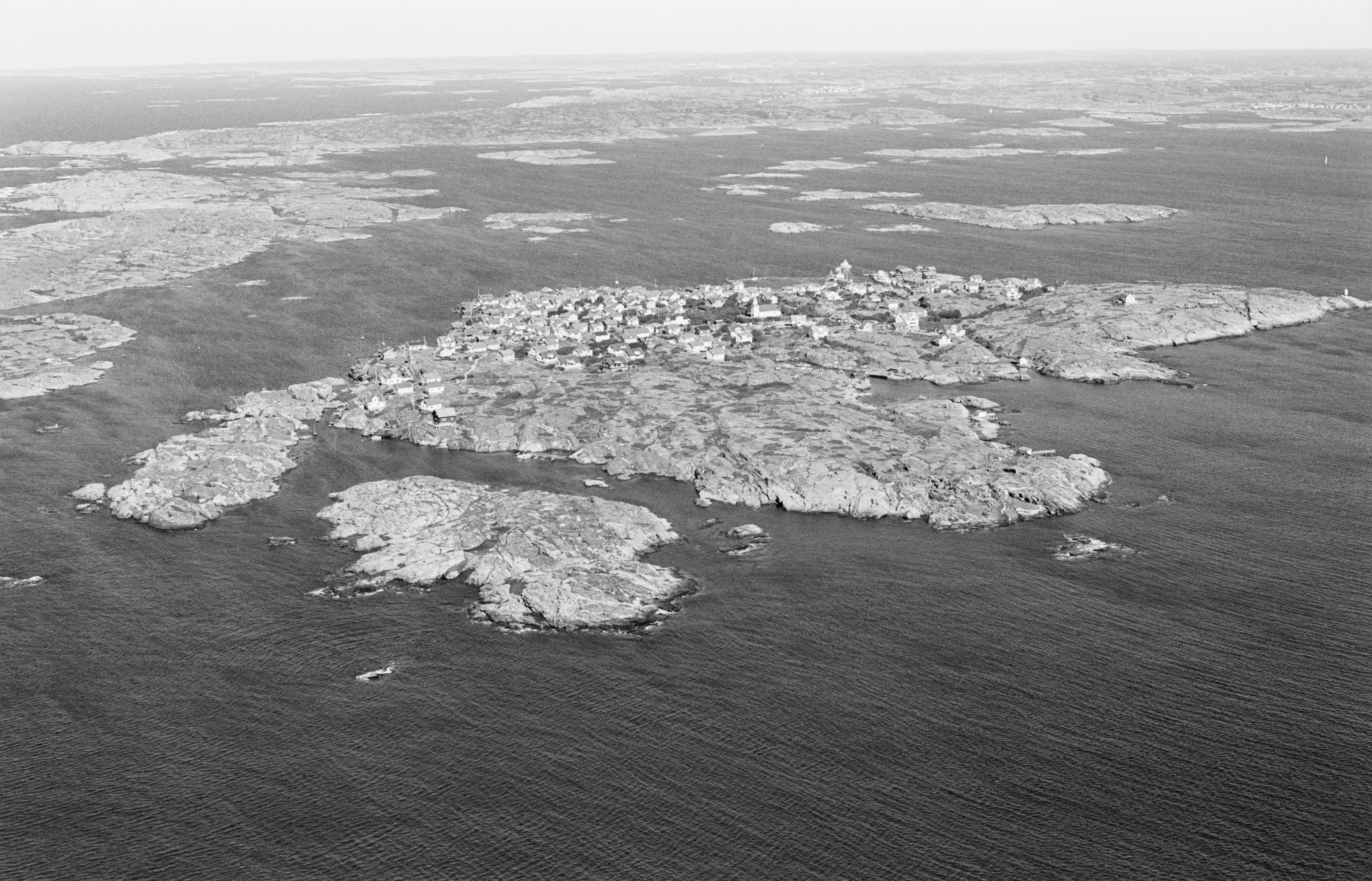 Beskrivning: Käringöns fiskeläge. Käringöns kyrka vid bildens mitt. Bilden är tagen mot (väderstreck): NNO