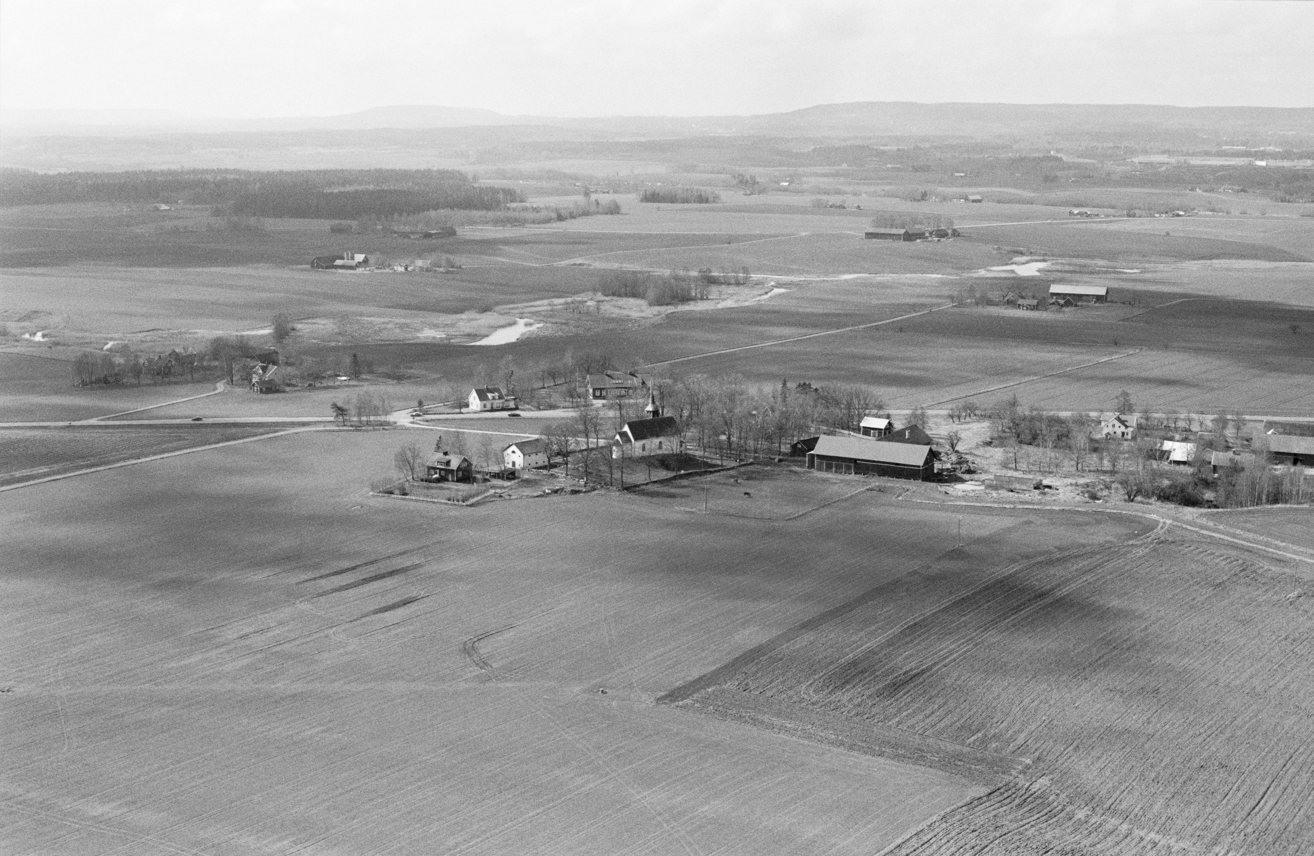 Beskrivning: Forsby kyrka, kyrkby och sockenmagasin. Kyrkan står på gravhög RAÄnr Forsby 48:1. Bilden är tagen mot (väderstreck): SV