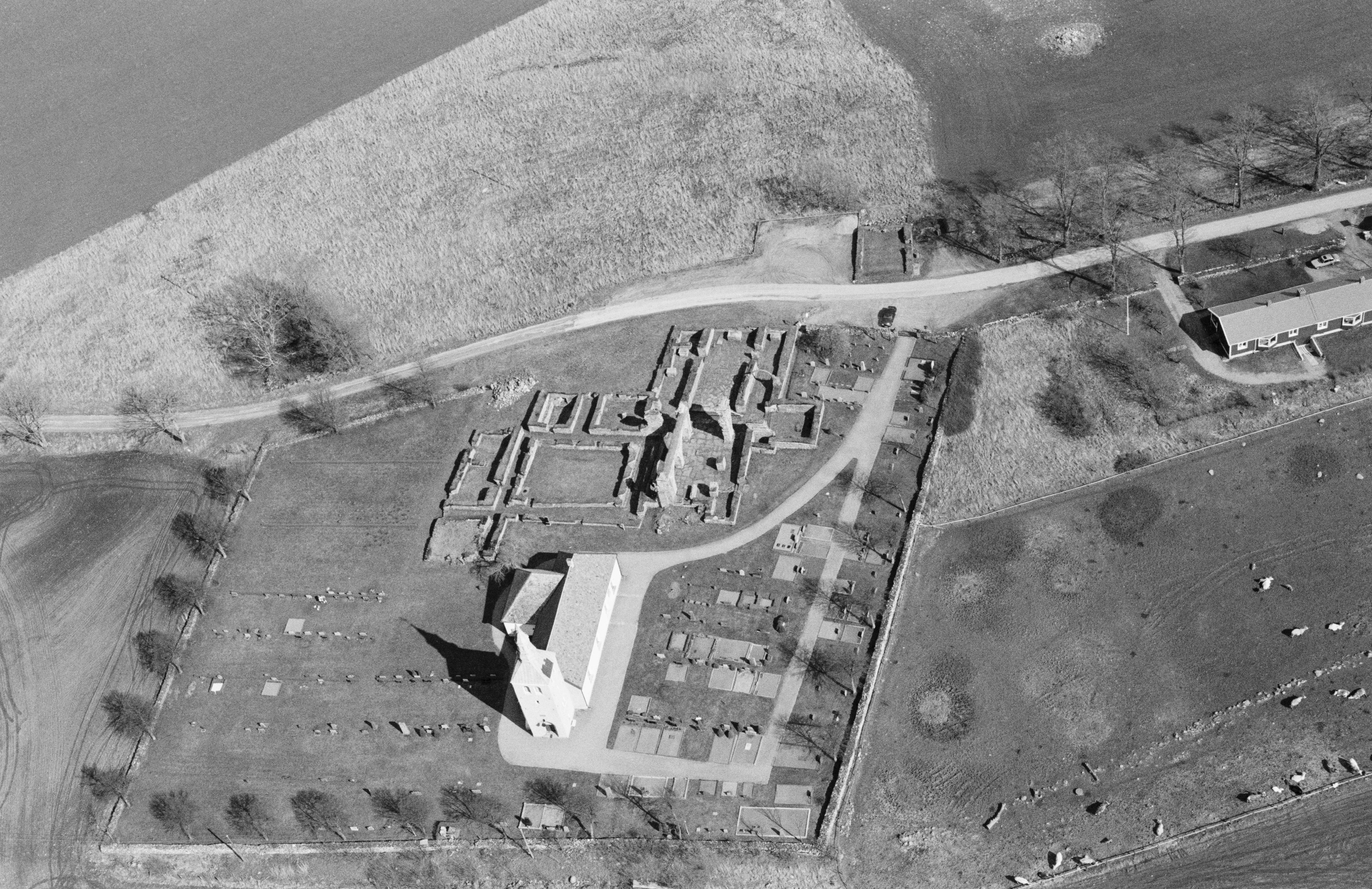 Beskrivning: Gudhems kyrka och klosterruin RAÄnr Gudhem 72:1. Bilden är tagen mot (väderstreck): Ö