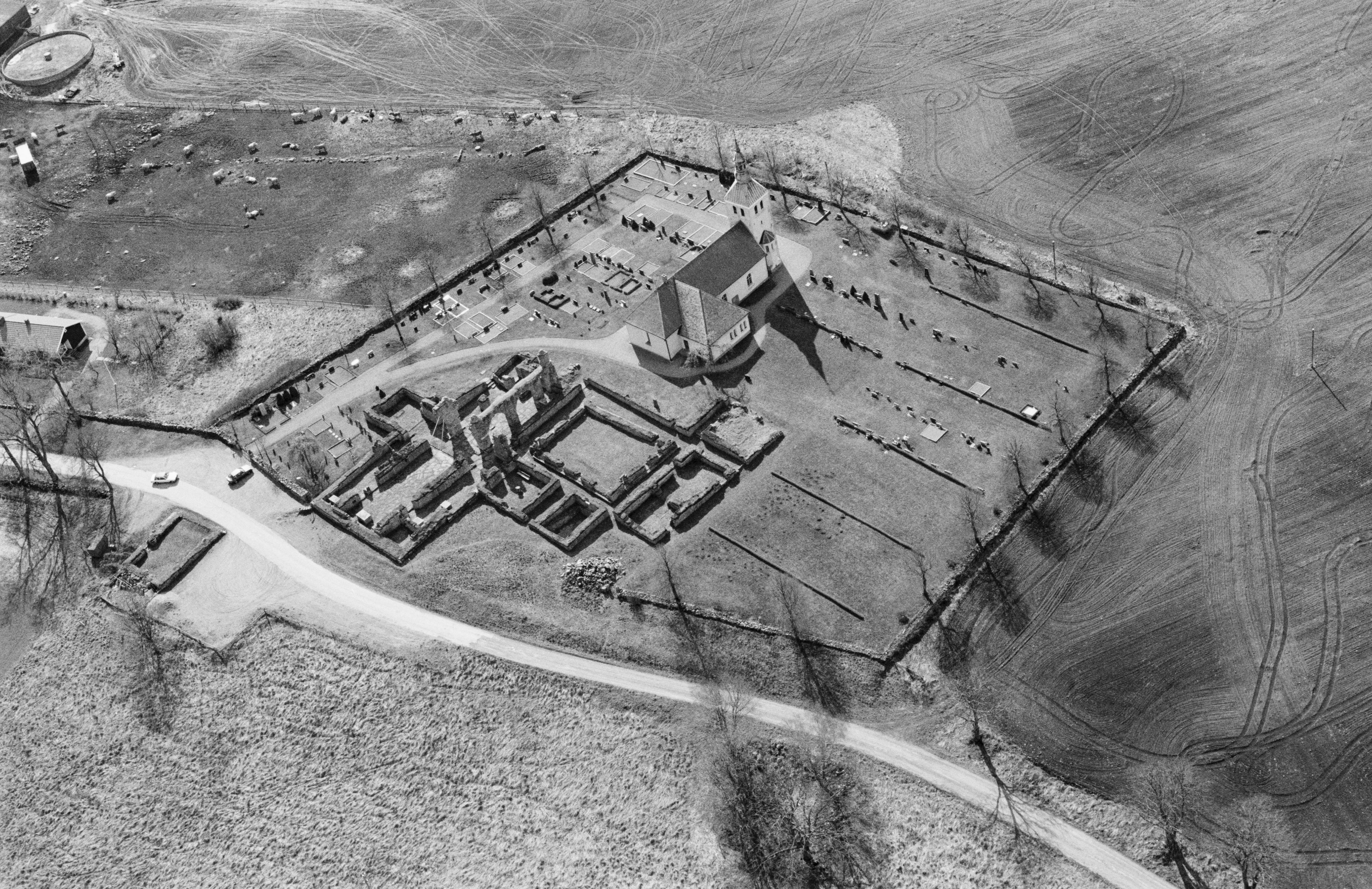 Beskrivning: Gudhems kyrka och klosterruin RAÄnr Gudhem 72:1. Bilden är tagen mot (väderstreck): SV