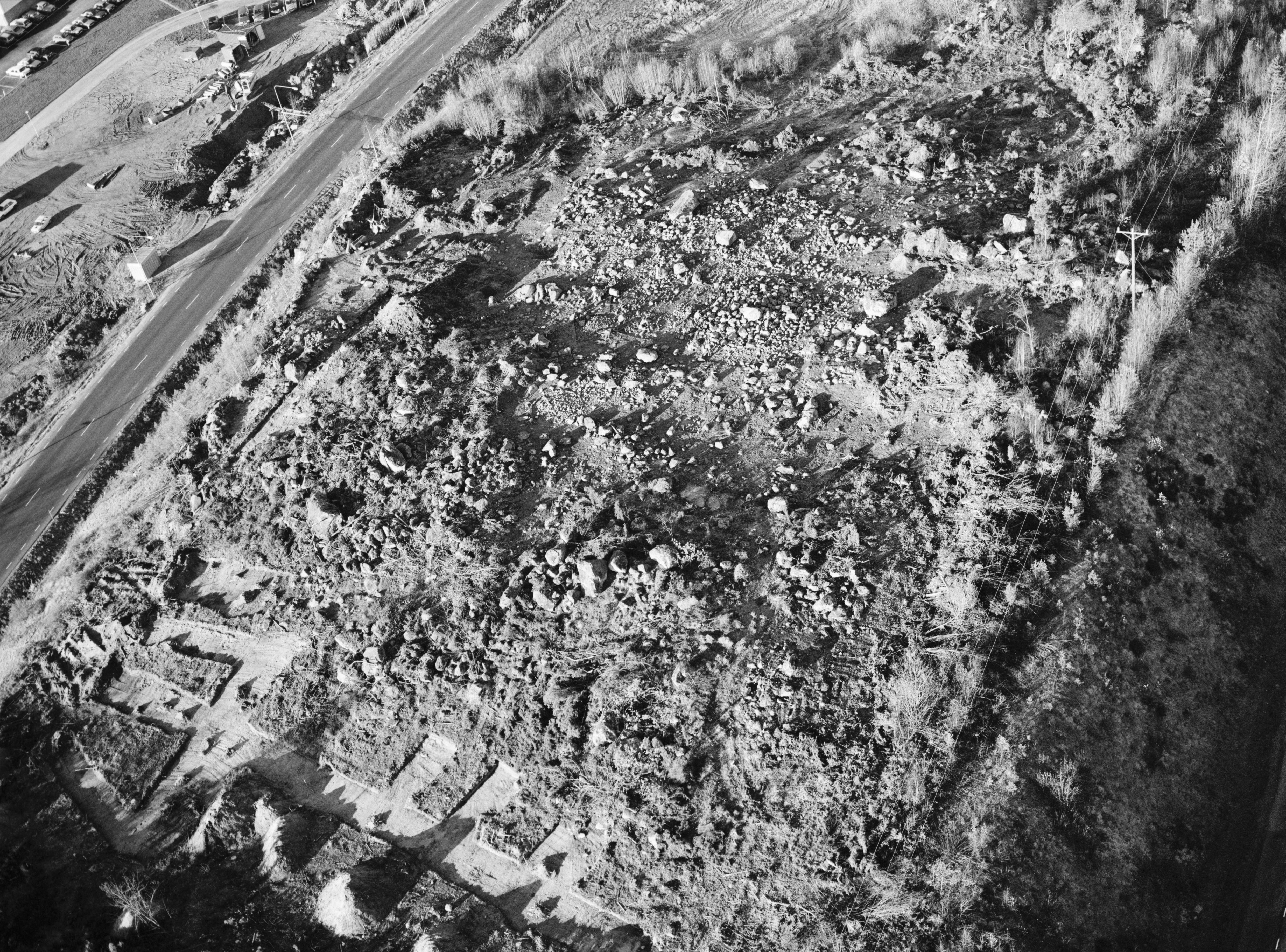 Beskrivning: Folkesta i nordvästra delen av tätorten Hällbybrunn. Vid bildens mitt arkeologisk undersökning av grav- och boplats RAÄnr Torshälla 145:1 innan nybyggnation. Bilden är tagen mot (väderstreck): VNV