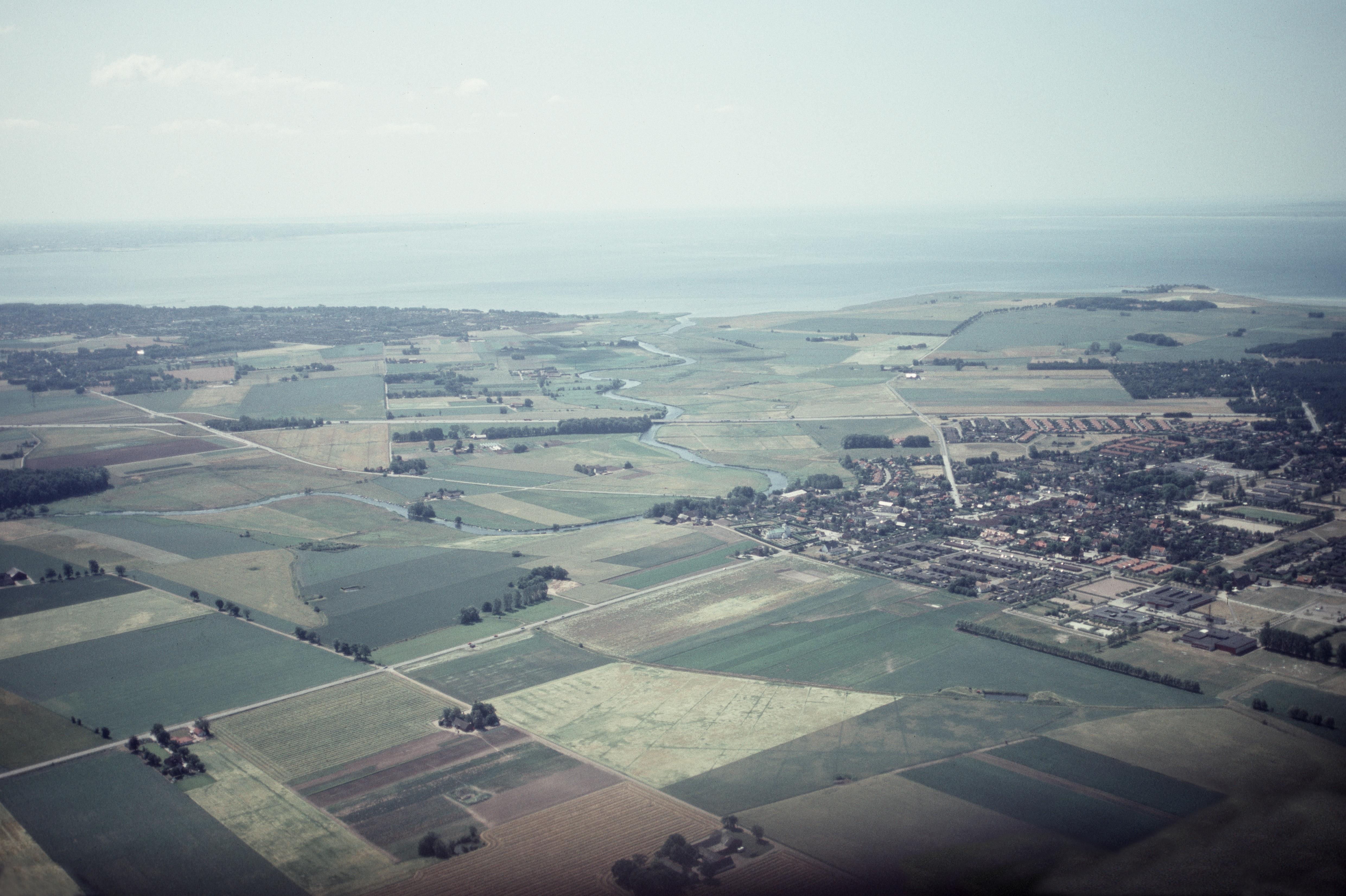 Beskrivning: Lödde å mellan Löddeköpinge tätort och utloppet vid Bjärred. Ån markerar gränsen mot socknet Borgeby (till vänster). Löddeköpinge kyrka vid bildens mitt. Bilden är tagen mot (väderstreck): SV