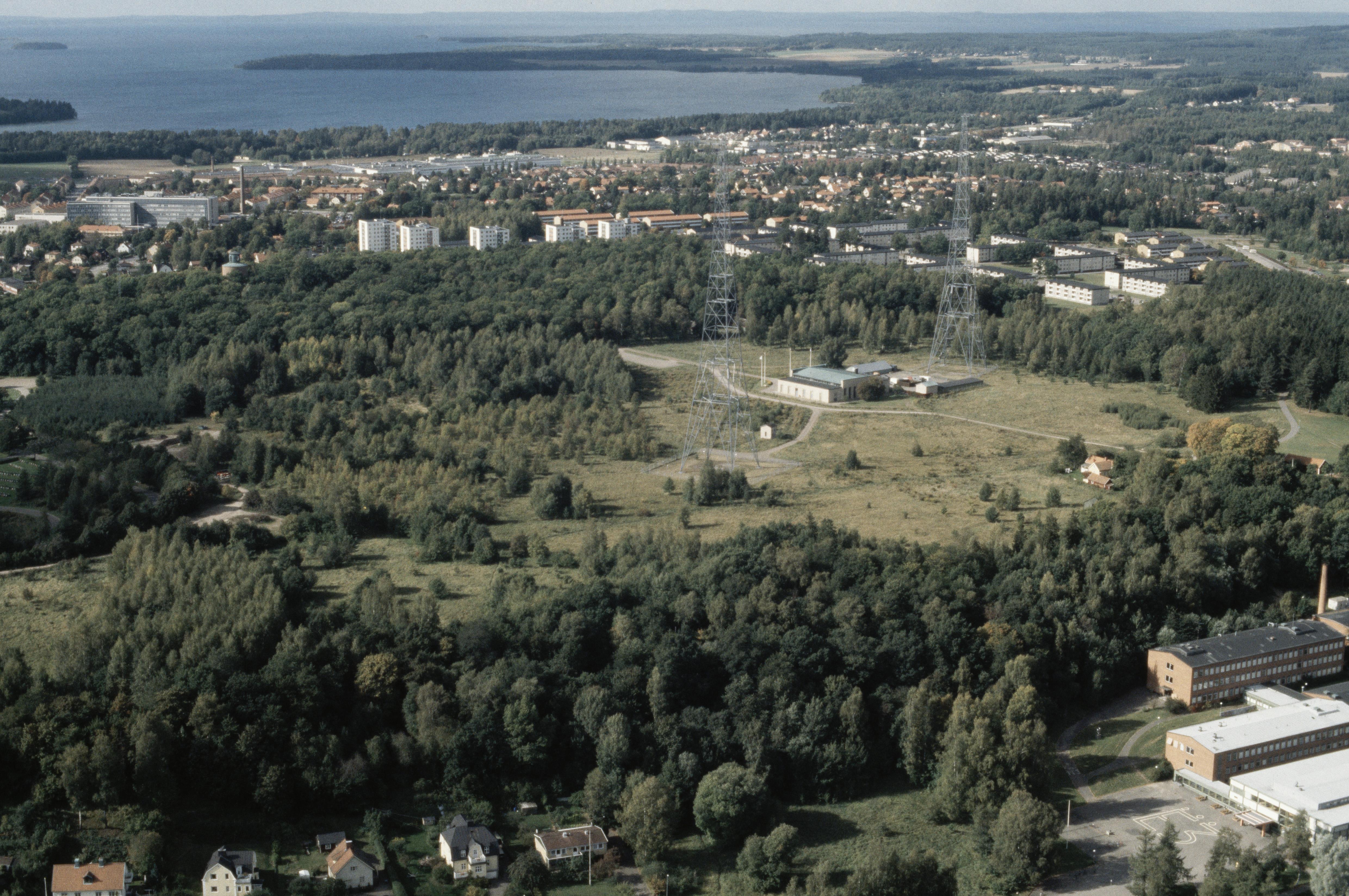 Beskrivning: Motala tätort. Vid bildens mitt Sveriges rundradiomuseum på Bondebacka. Sjön Vättern i bildens övre del. Bilden är tagen mot (vädersträck): NV