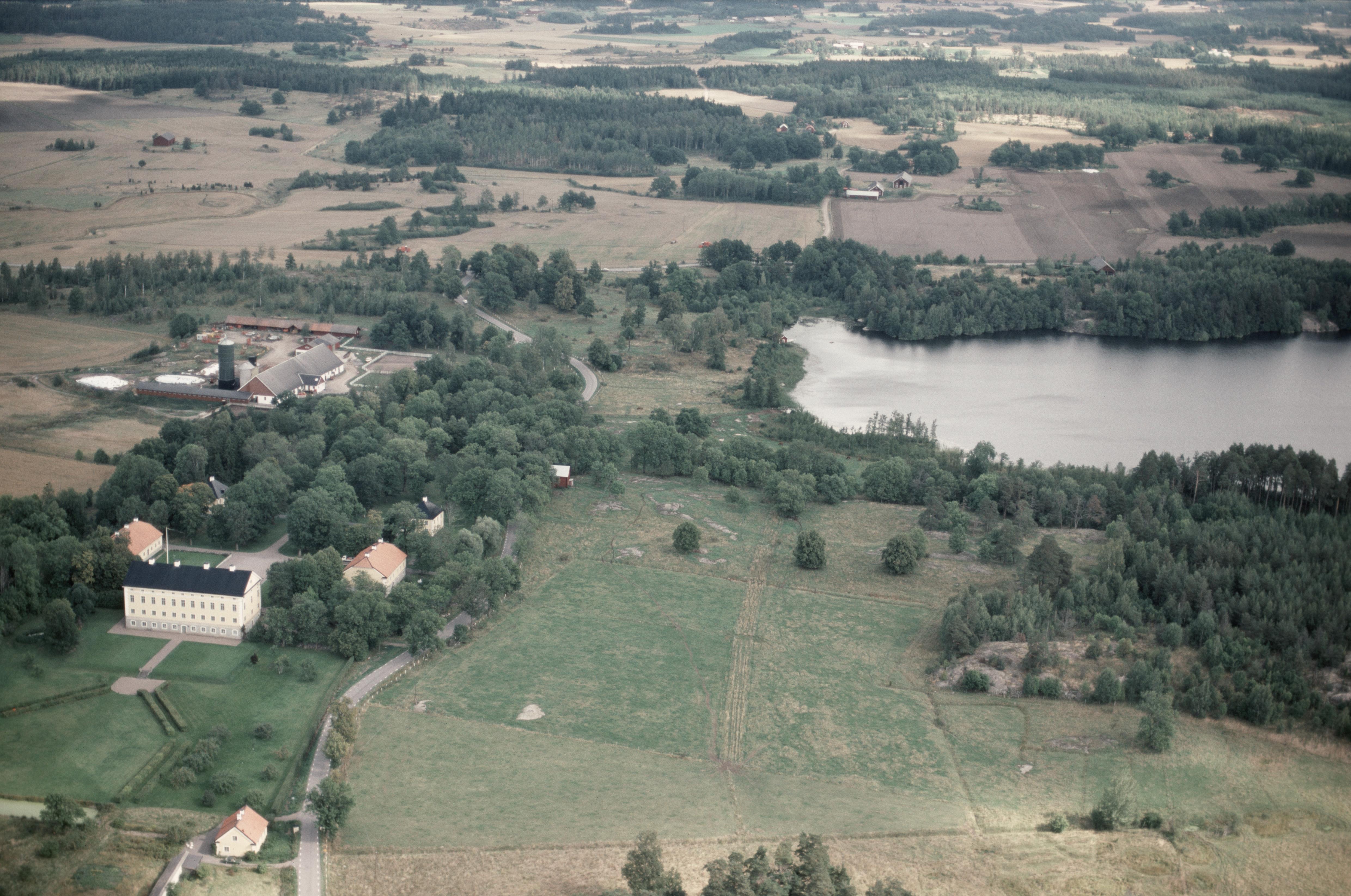 Beskrivning: Hylinge herrgård (benämns även Hylings slott) RAÄnr Västra Husby 132:1 vid Lillsjön. Vid bildens mitt vallfragment Götavirke Västra Husby 111:1, Dömestads gamla tomt RAÄnr 110:1 m.fl. Bilden är tagen mot (väderstreck): NO