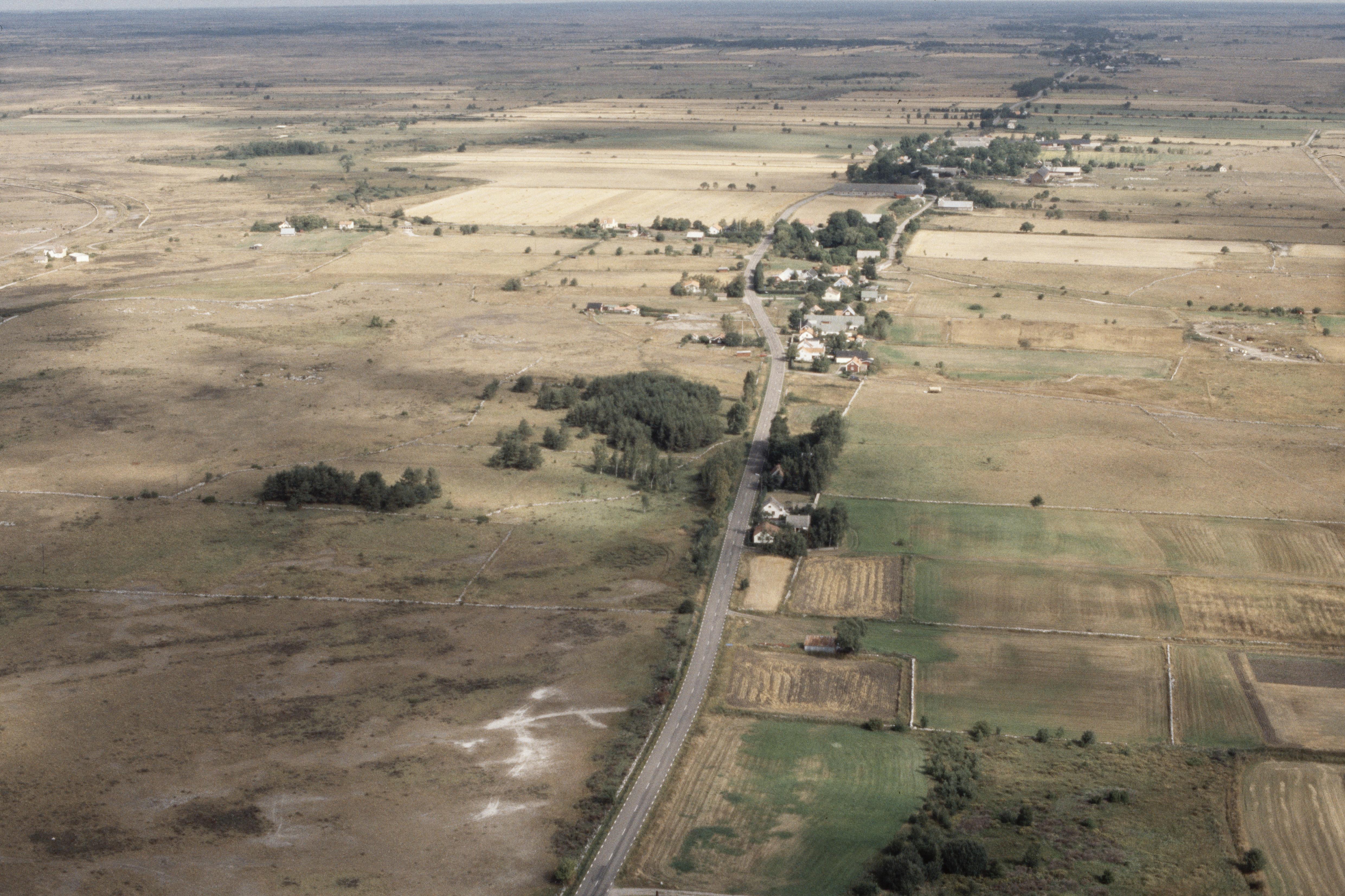 Beskrivning: Alvaret. Skärlövs by. I bildens övre del Hulterstad. Bilden är tagen mot (väderstreck): NNV