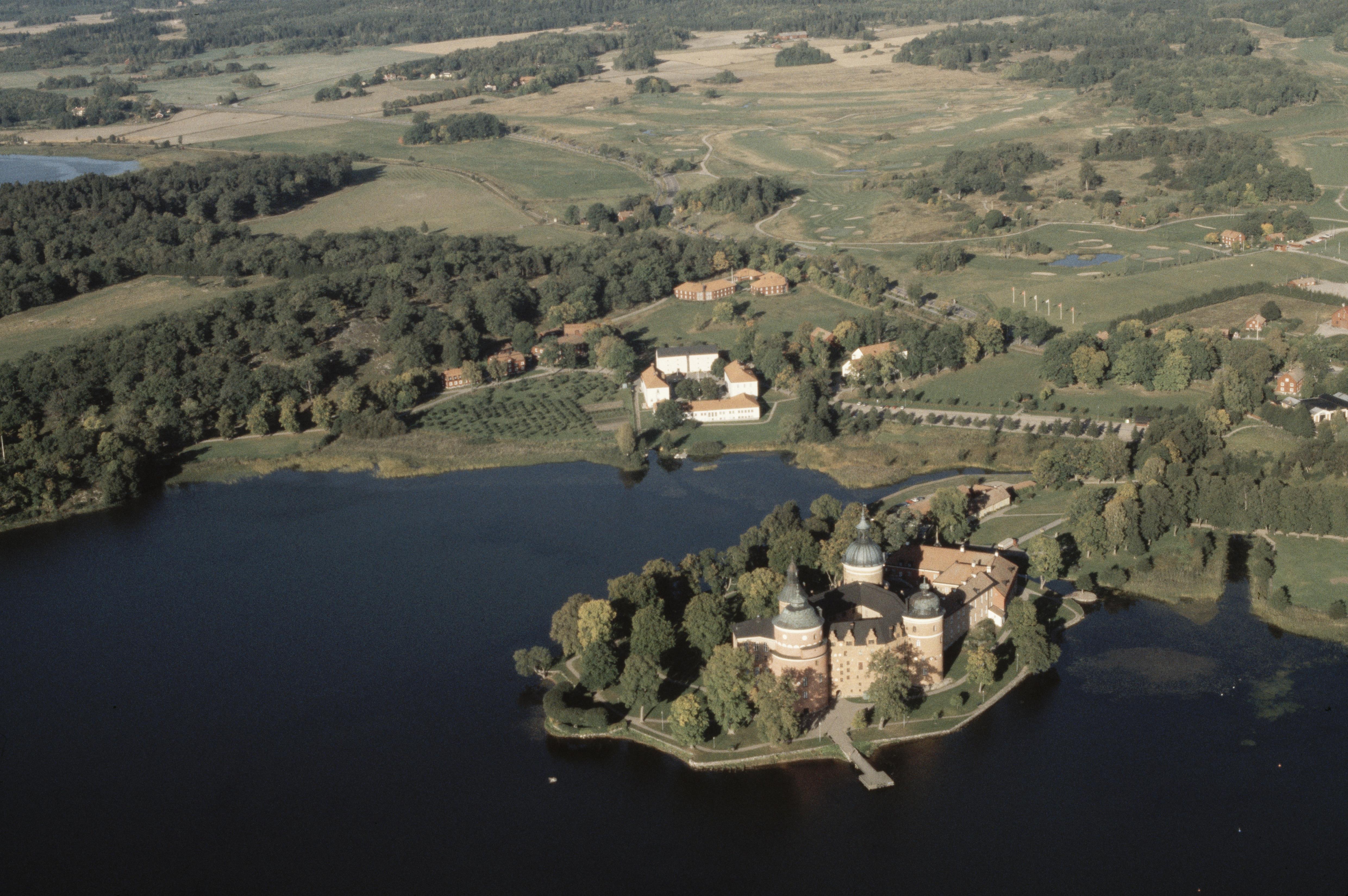 Beskrivning: Vid sockengränsen Kärnbo och Mariefred (nere till höger) Kungsladugården och Gripsholms slott. Bilden är tagen mot (väderstreck): V